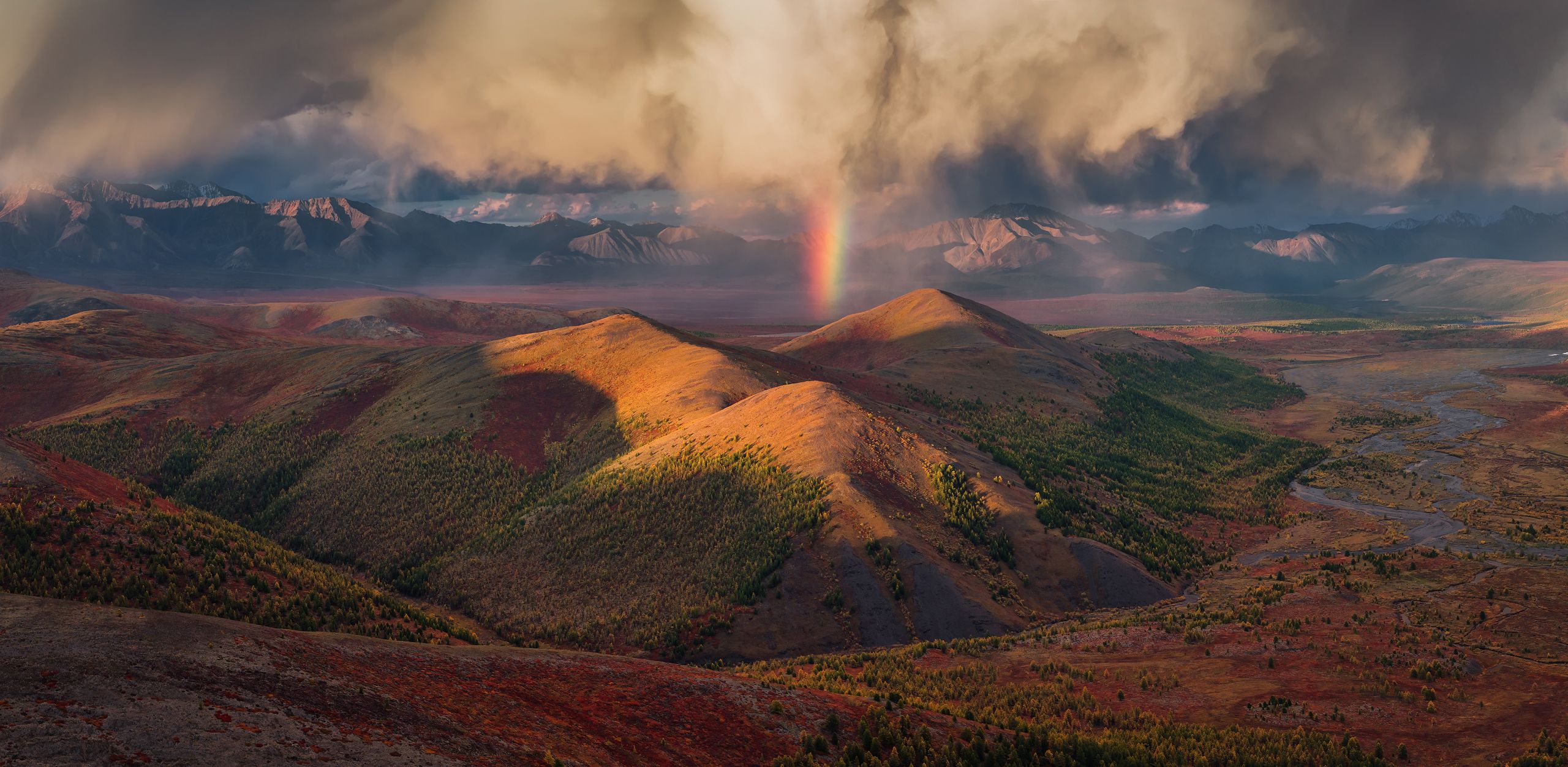 Максим, кадр мощный. Радуга в центре композиции работает как якорь, а свет на холмах выдержан точно. Контраст туч и солнечных пятен добавляет объёма. 🌈🏔️