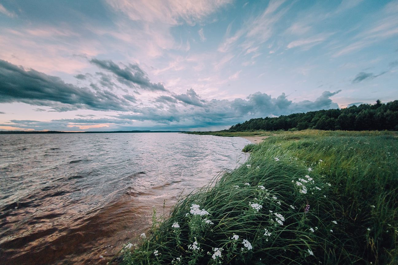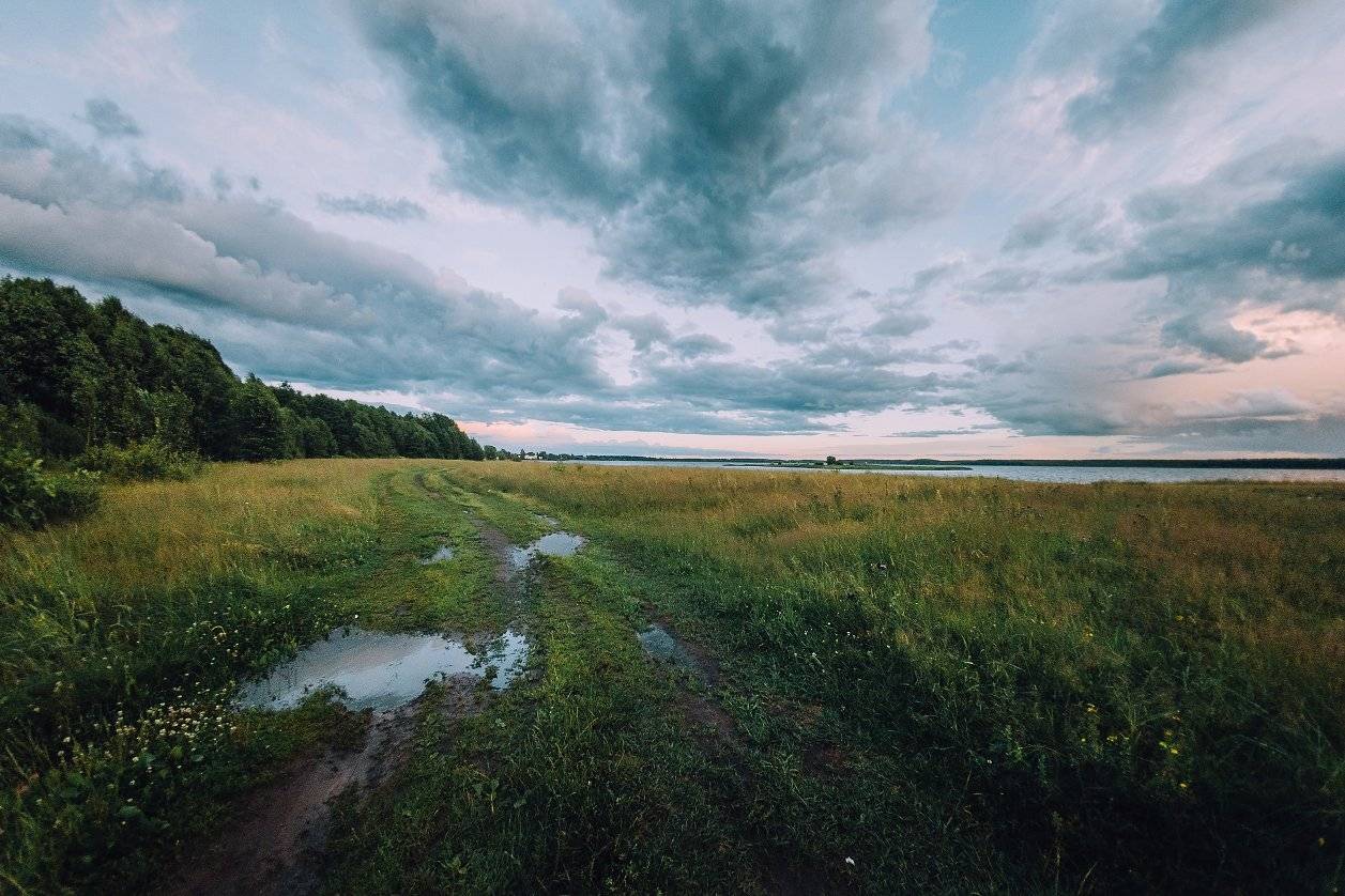 БерегДорогаЗакатЛетоЛужиОблакаТрава