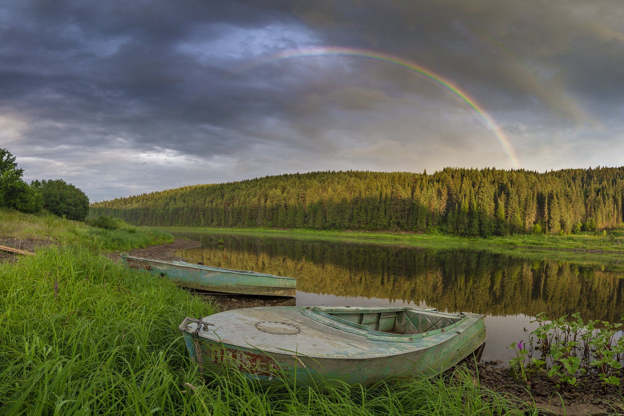 радуга, лодки, река, вечер, отражение, Савицкий Ян
