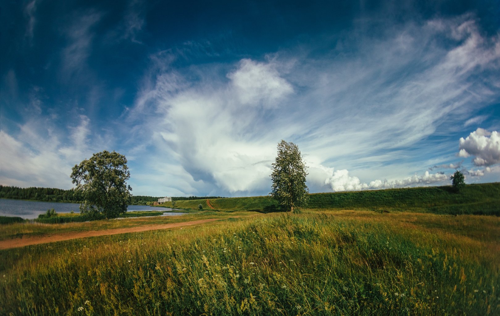 пейзаж, лето, облака, небо, мост, деревья, дорога, погода, Татьяна Афиногенова