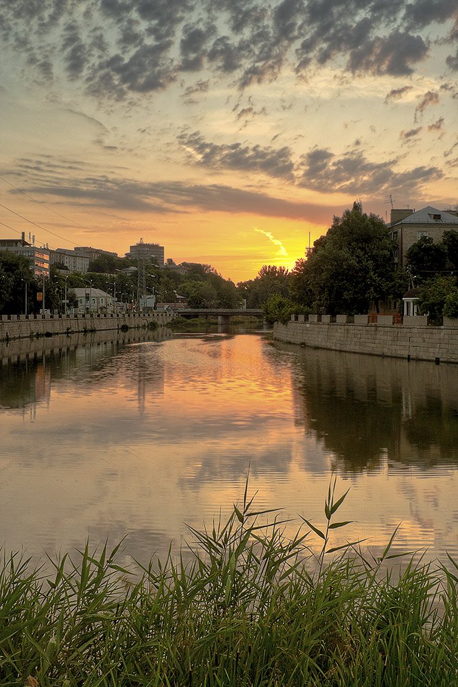 город, солнце, восход, облака, Владимир Костылев