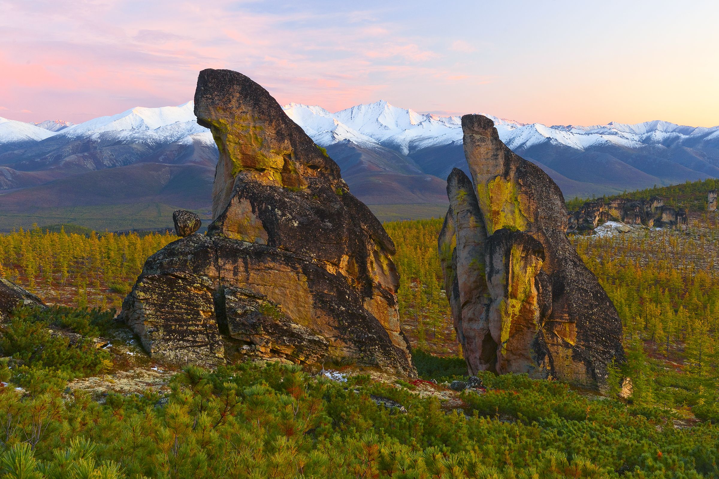 Оймяконские кисиляхи ( столбы) на правом берегу Индигирки.