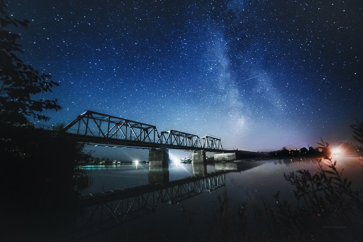 ночь, звезды, млечныйпуть, мост, отражение, вода, река, Татьяна Афиногенова