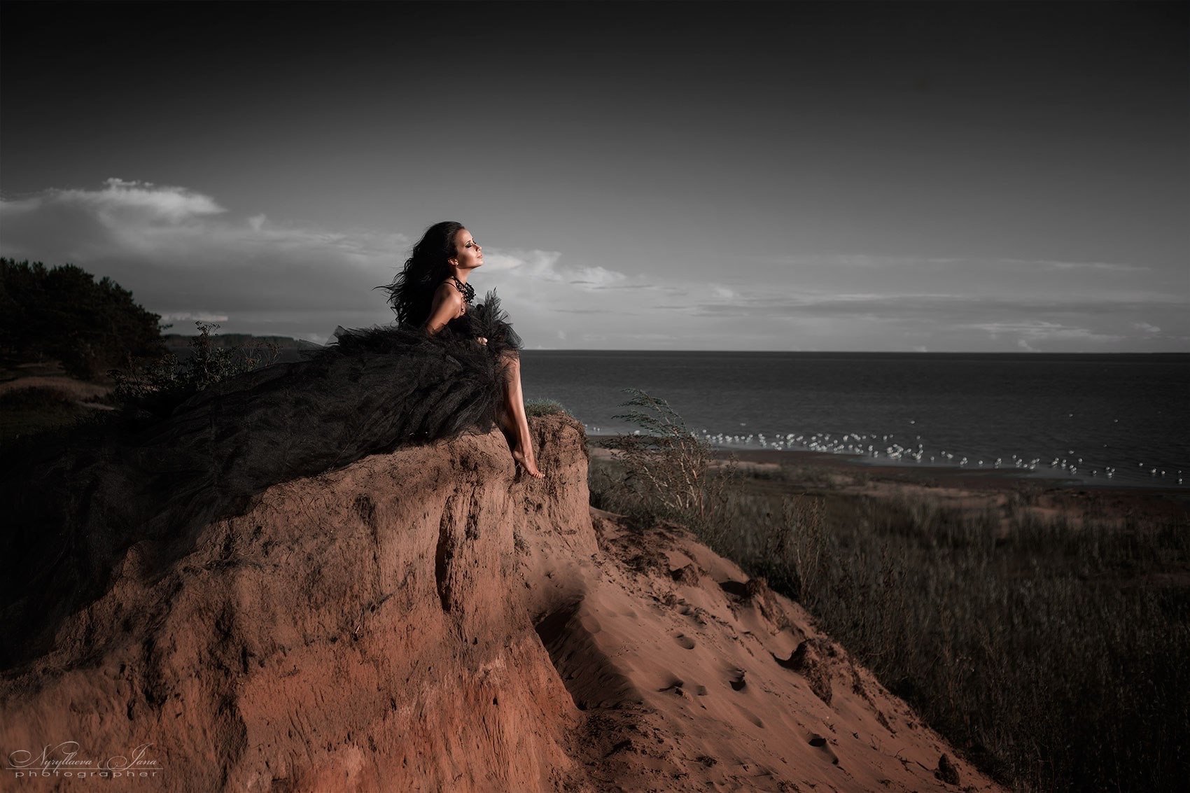 Фотосессия тематическаяфотосессия фотографнуруллаеваяна съемка  природа девушка модель красиво blackнебо природа пейзаж идеядлясъемки брюнетка платье , Нуруллаева Яночка