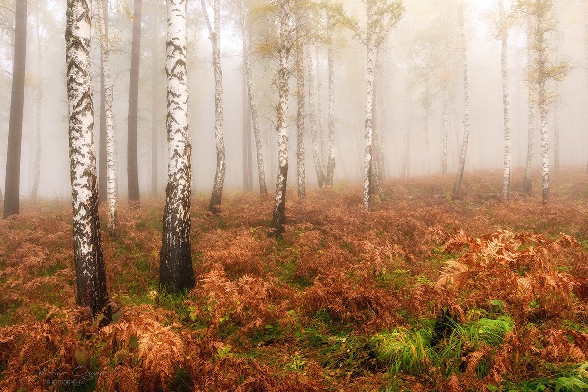 Уже какой год мечтаю оказаться осенью в буковых лесах Крыма!!! Окунуться в туманы, пообщаться со ржавыми великанами, пошуршать листвой, насладиться атмосферой сказочного леса! К сожалению, все никак не получается... Но, мы не отчаиваемся и ищем альтернативу ) Вместо бука - березы и сосны. Ржавчину щедро дарит папоротник. Ну, и туман - самый главный герой и любимчик! Получился такой сибирский Крым ))