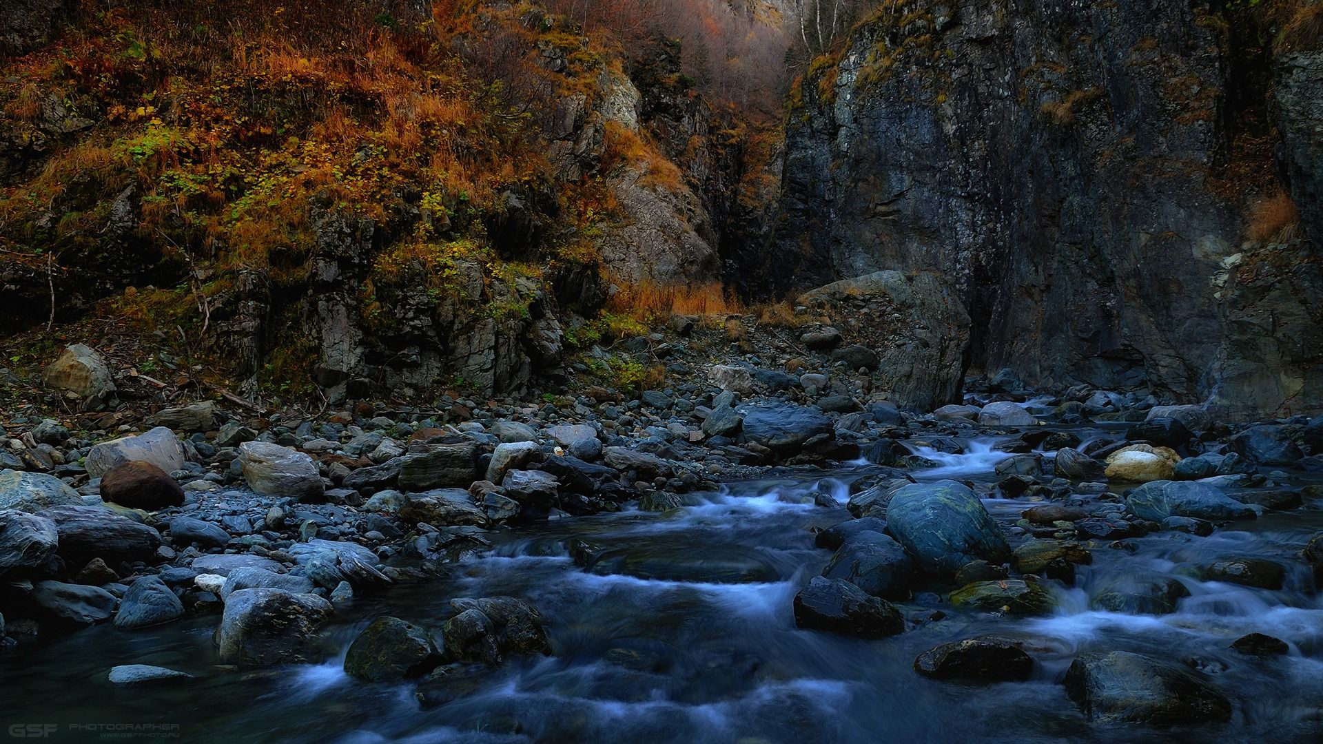 Каньон Аманауз не очень любит гостей и потому на входе, как правило, мрачновато... Но красиво :) Снимал с нейтральным серым фильтром, со штатива. Полный размер картинок 1920х1080, по возможности раскрывайте.