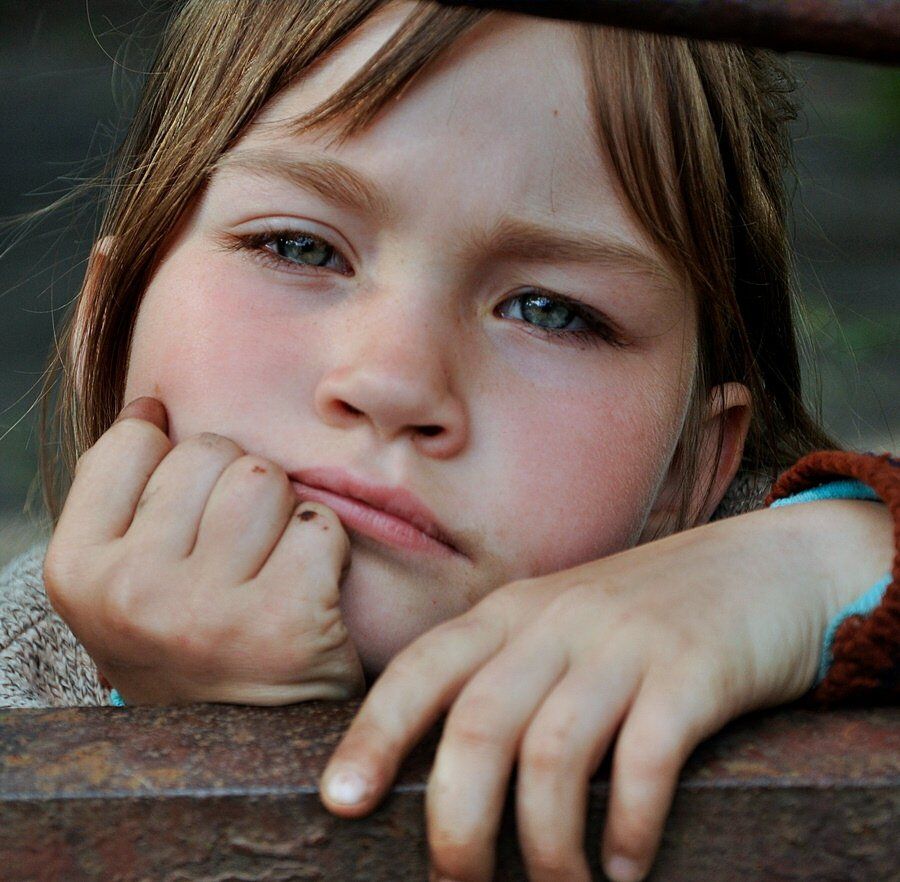Несчастная она...у нее ни мамы ни папы...в детском доме,но теперь ее забрала бабушка а глаза так и остались у нее ...грустные!