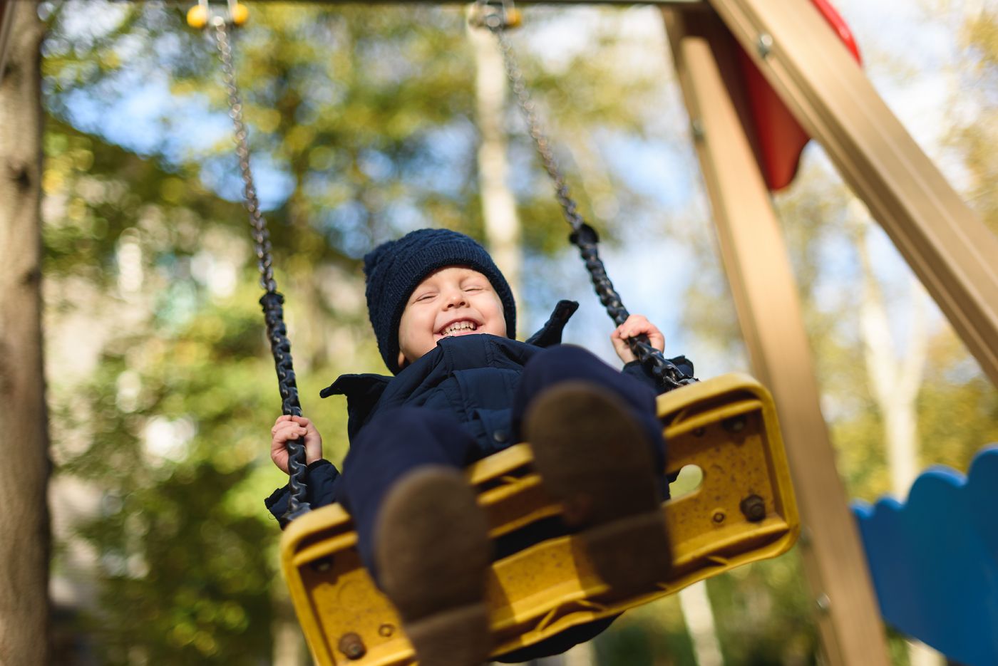 Мальчиккачеливесельесмехосеньплощадкапрогулкаулыбка