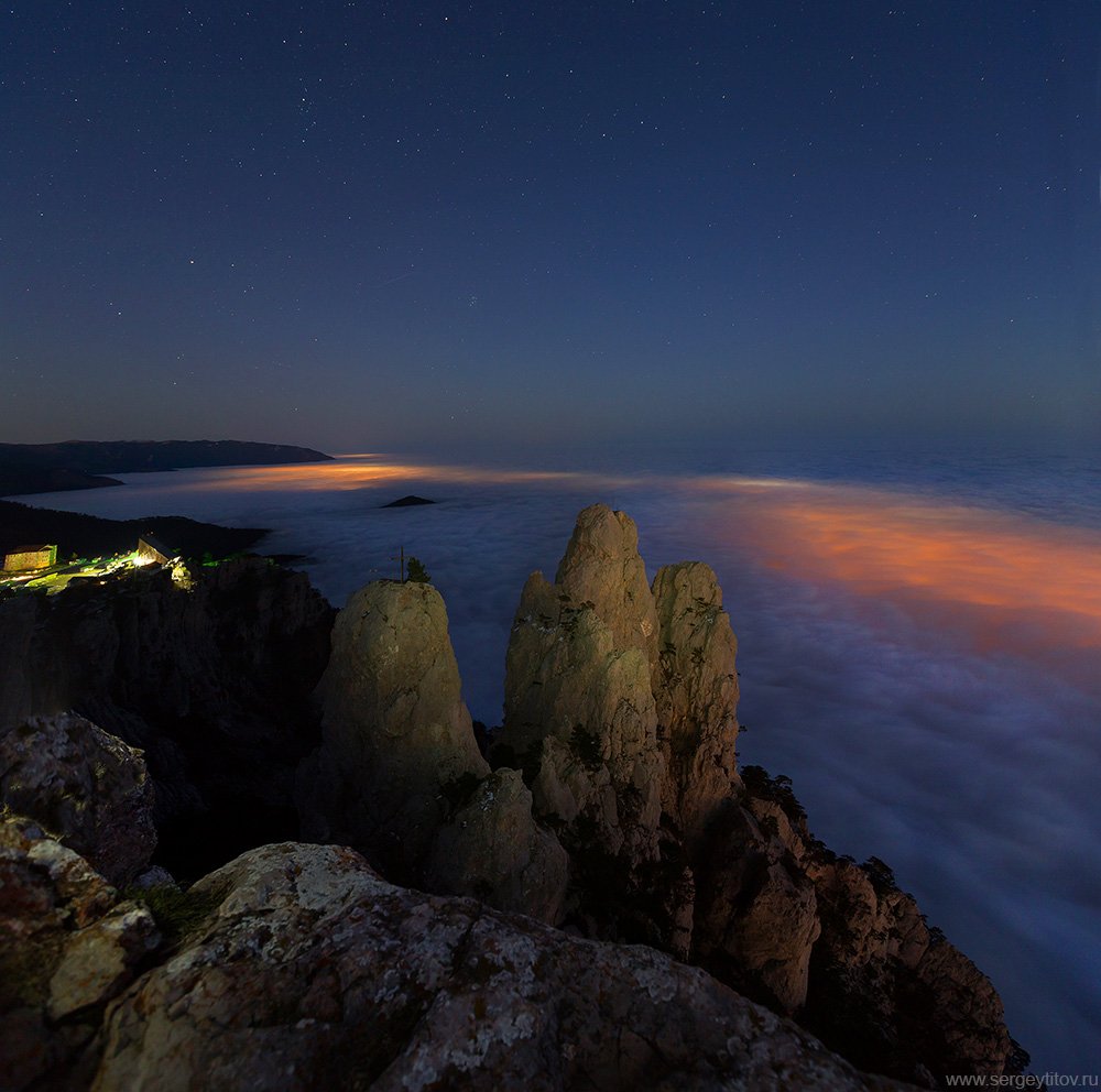 крым, ялта, ай-петри, ночь, город, туман, море, горы, осень в крыму, осень в ялте, облака, звезды, зубцы ай-петри, Serge Titov