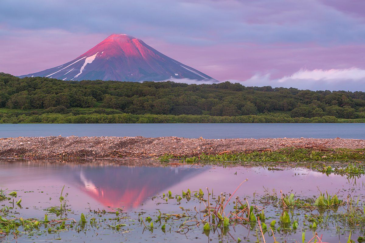 камчатка, фототур, путешествие, природа,  пейзаж, вулкан, закат, озеро, заповедник, отражение, Денис Будьков