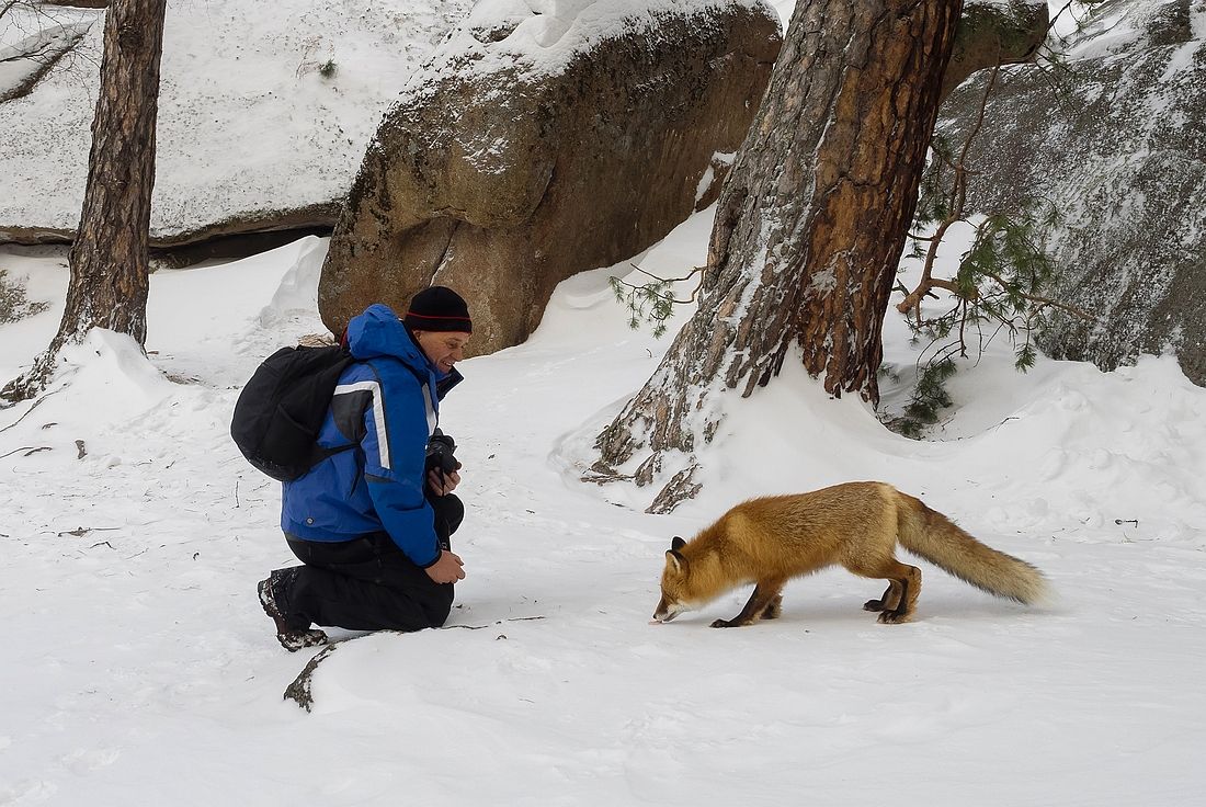 Заповедник "Столбы". Очень сожалею, что не захватил подходящий объектив, так как не думал встретить лису. На последнем фото кнопочку нажимал А. Лещёнок, за что огромное спасибо.