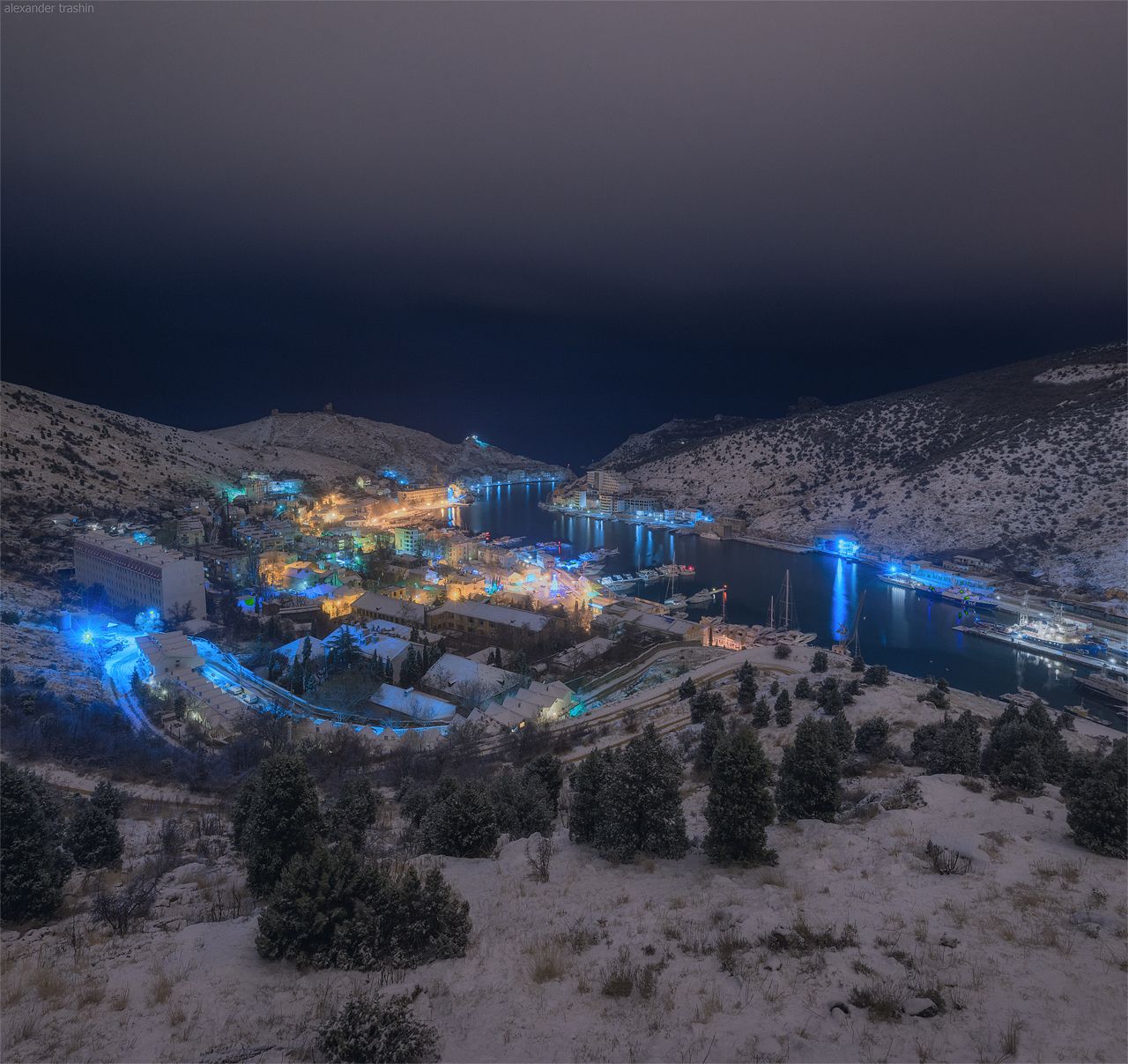 Серия работ с двух вечерних съёмок в покрытой льдом и снегом Балаклавской бухты.