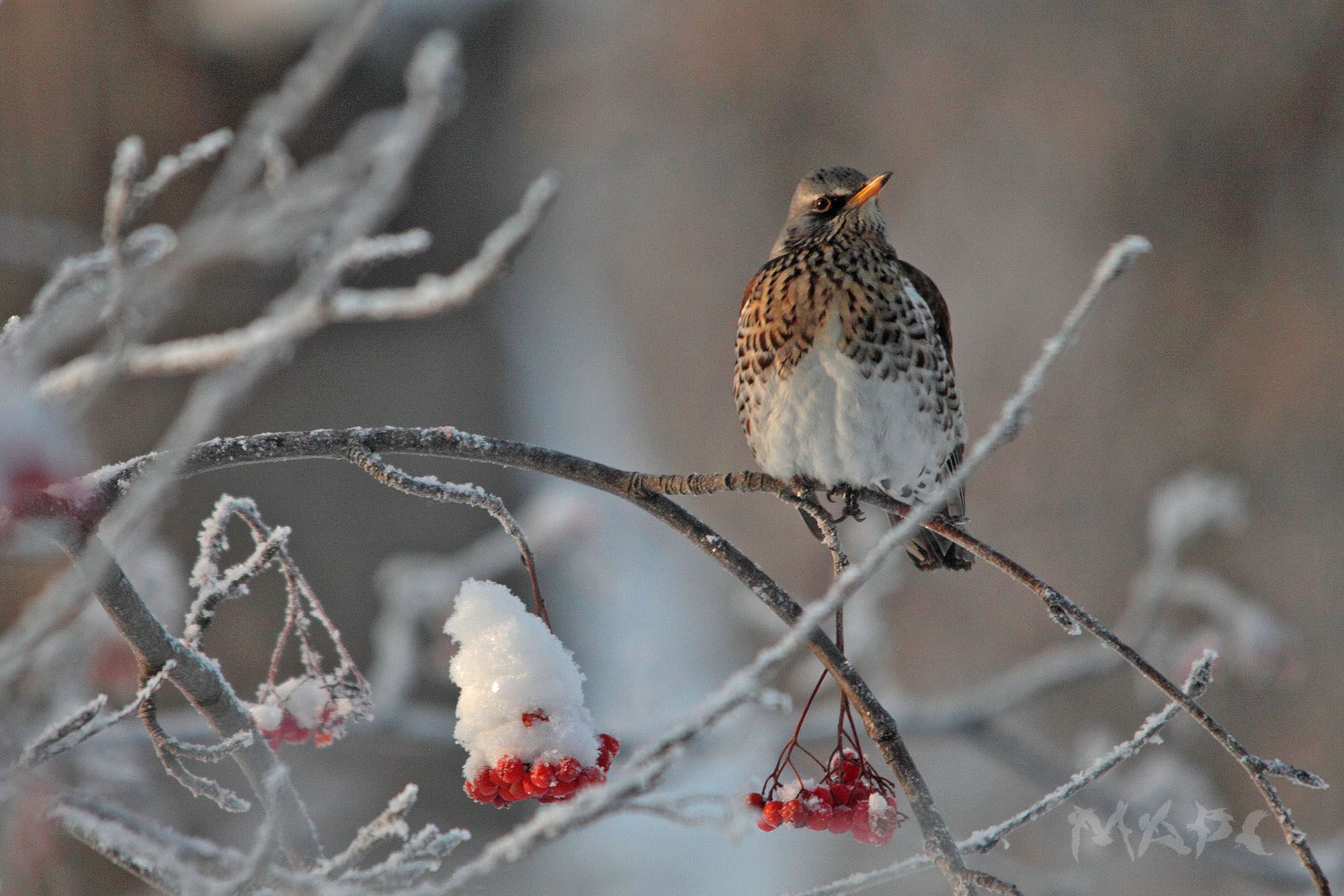 животные птицы дрозд рябинник зима рябина, Шангареев Марс