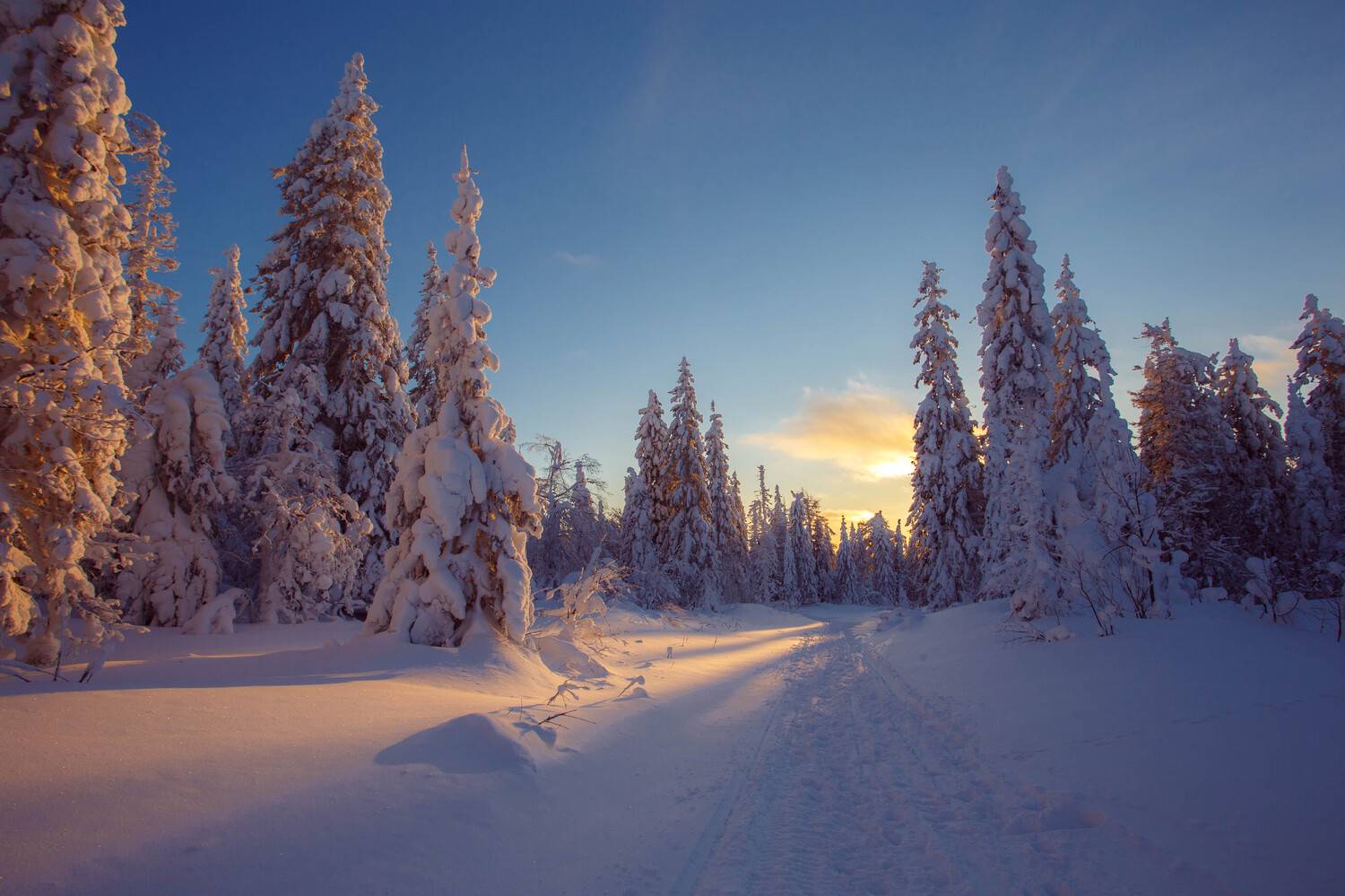сколько снега на деревьях.. красота