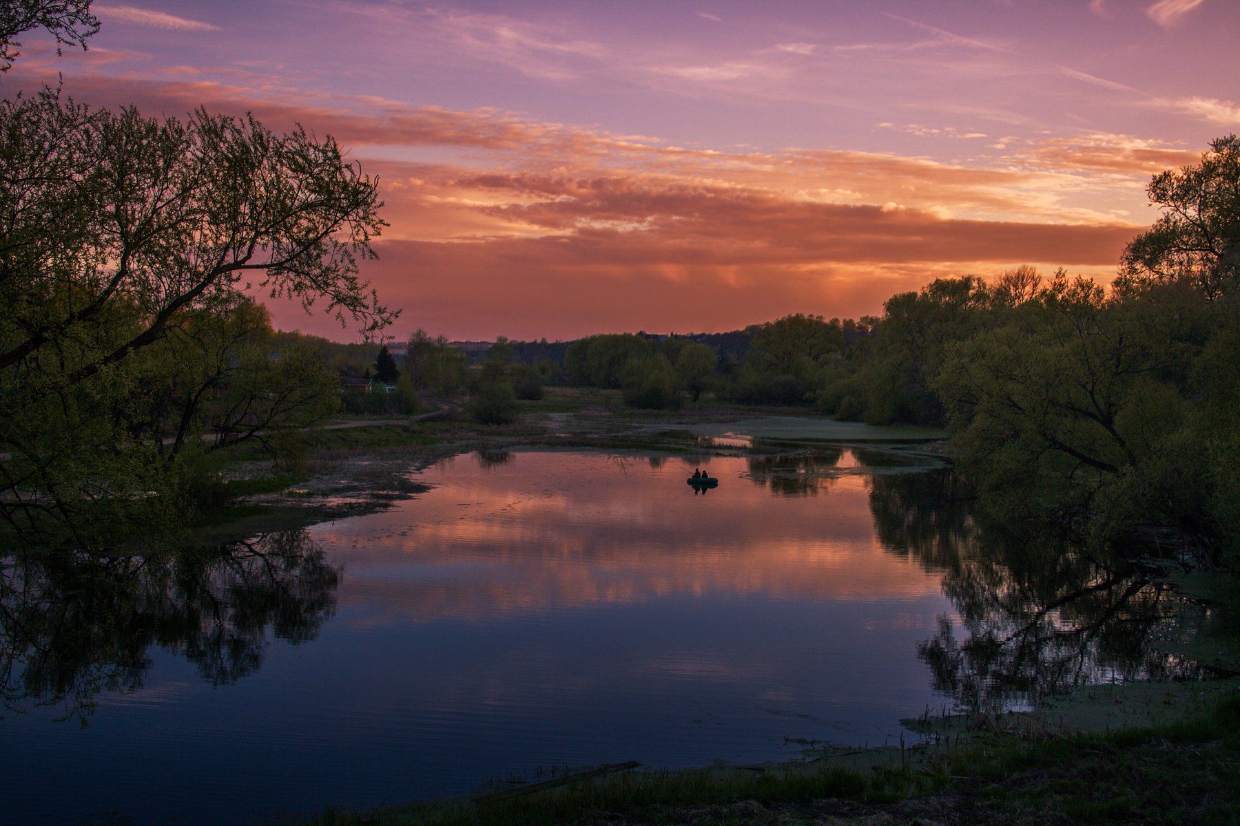природа, пейзаж, закат, рыбалка, пруд, лес, Екатерина