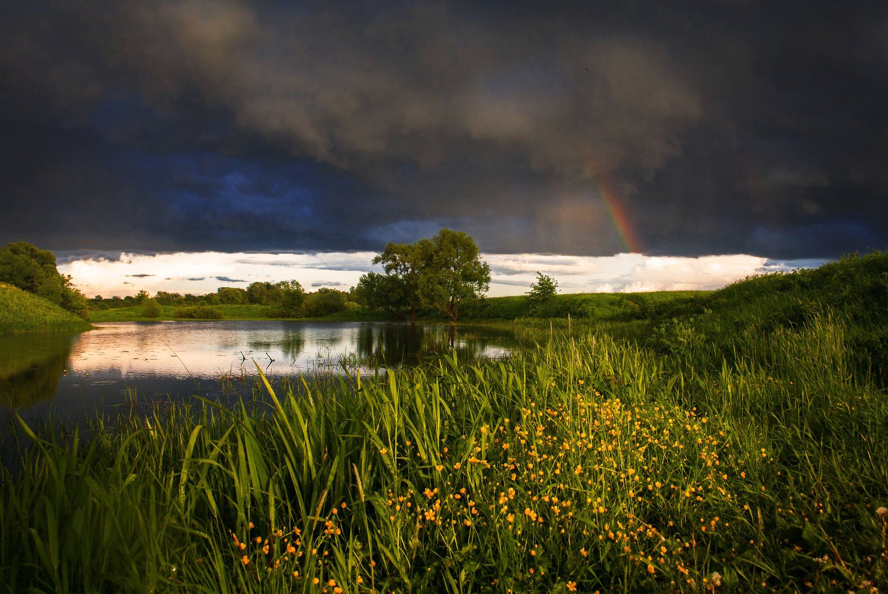 фото, природа, закат, гроза, радуга, река, лес, Екатерина