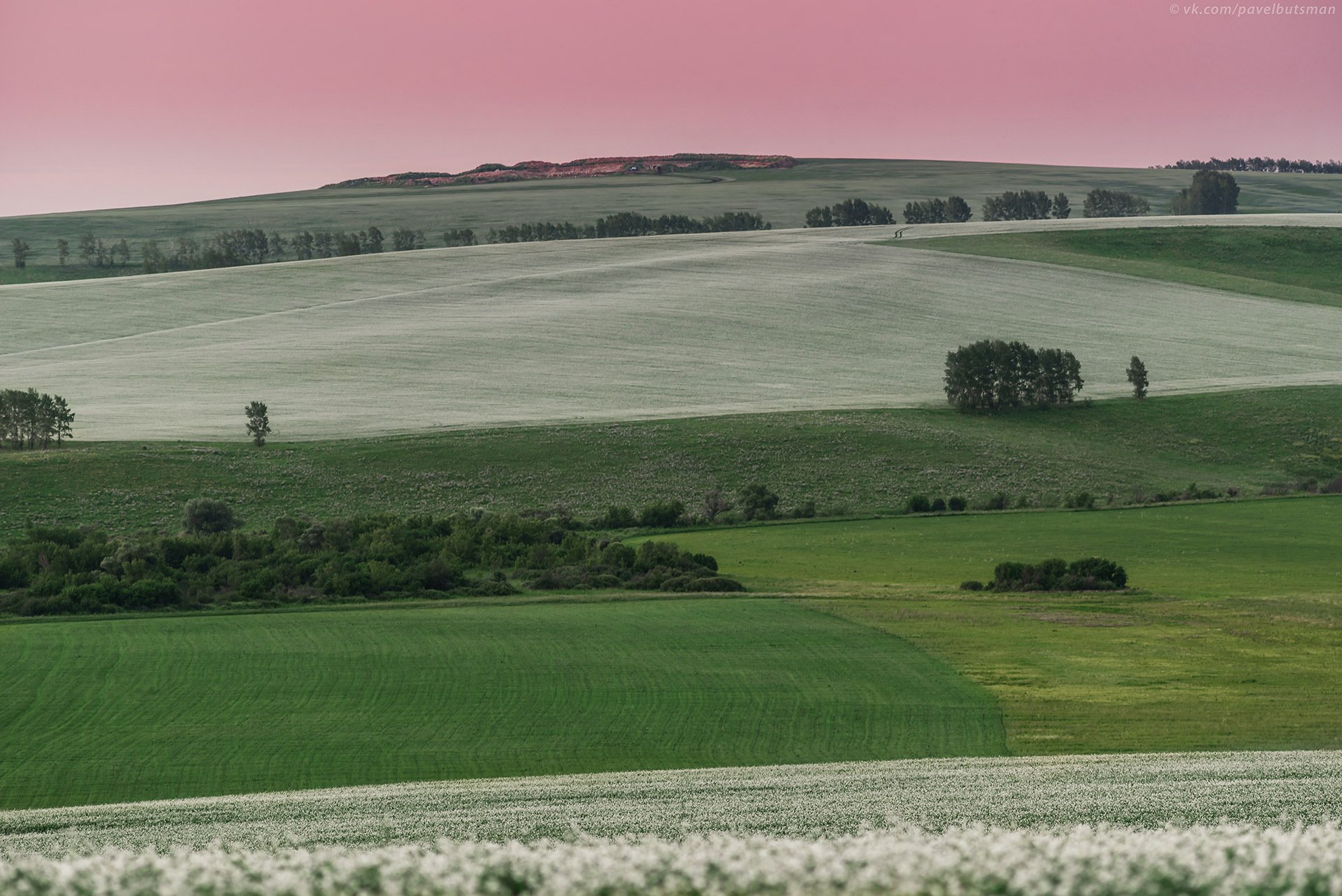 Алтай, пейзаж, вечер, поле, цветы, закат, Павел Силиненко