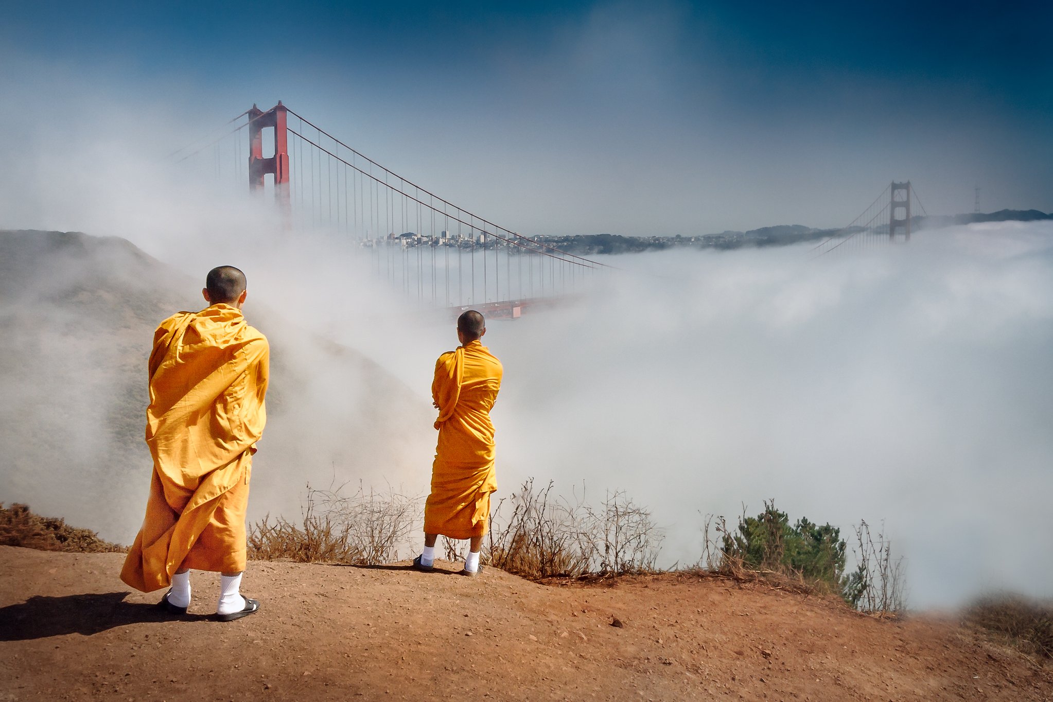 восток, запад, монахи, мост золотые ворота, сан-франциско, туман, Андрей Огнев