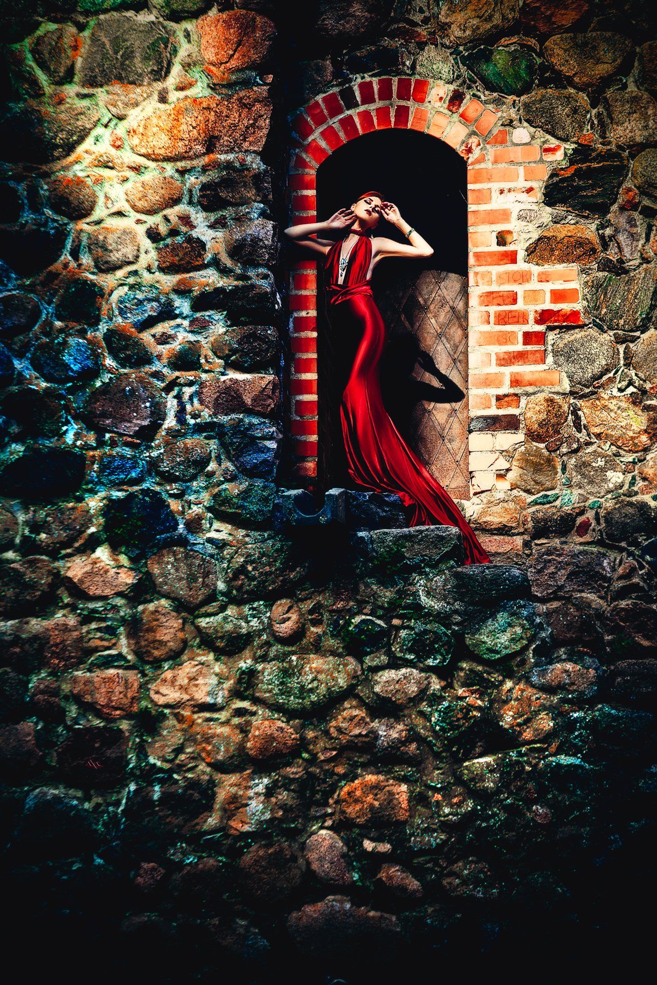 woman, portrait, dress, red, castle, concept, redhead, beauty, natural light, Руслан Болгов (Axe)