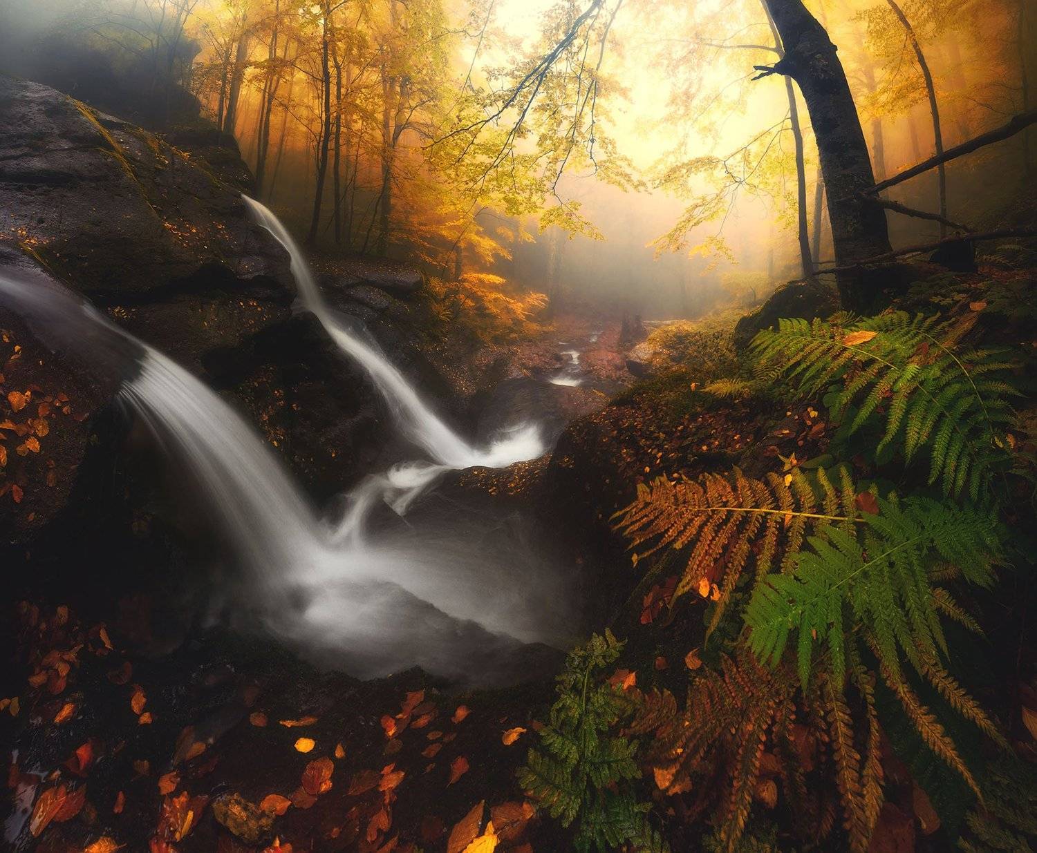 Есть место - где много водопадов, и все рядом. Осеню там очень часто туманы. Идеальное место - в горе Стара планина - на западе, почти с границы с Сербии :)