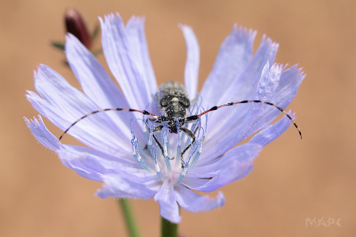 макро жук усач лето цикорий цветок, Шангареев Марс