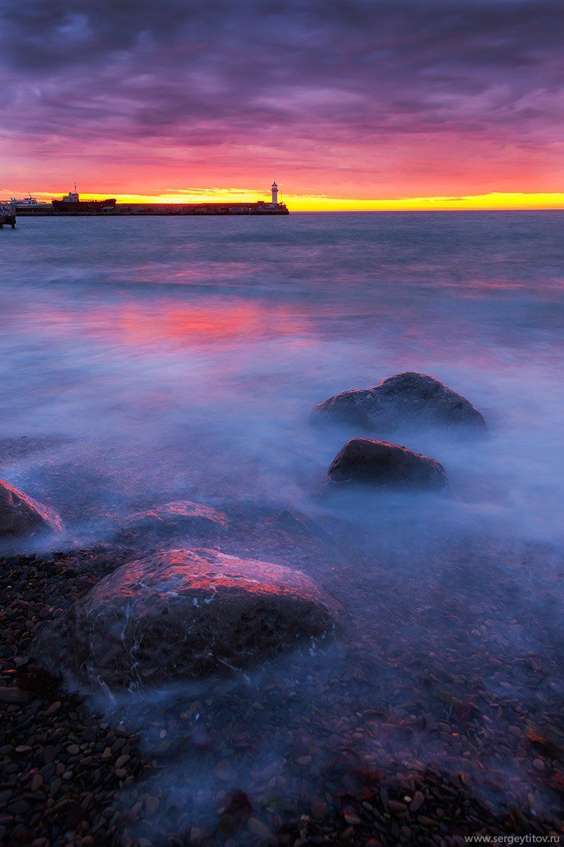 крым, ялта, пляж, волна, фотограф крым, фотограф ялта, маяк, навигация, ялтинский маяк, шторм, длинная выдержка, крымские пейзажи, Serge Titov