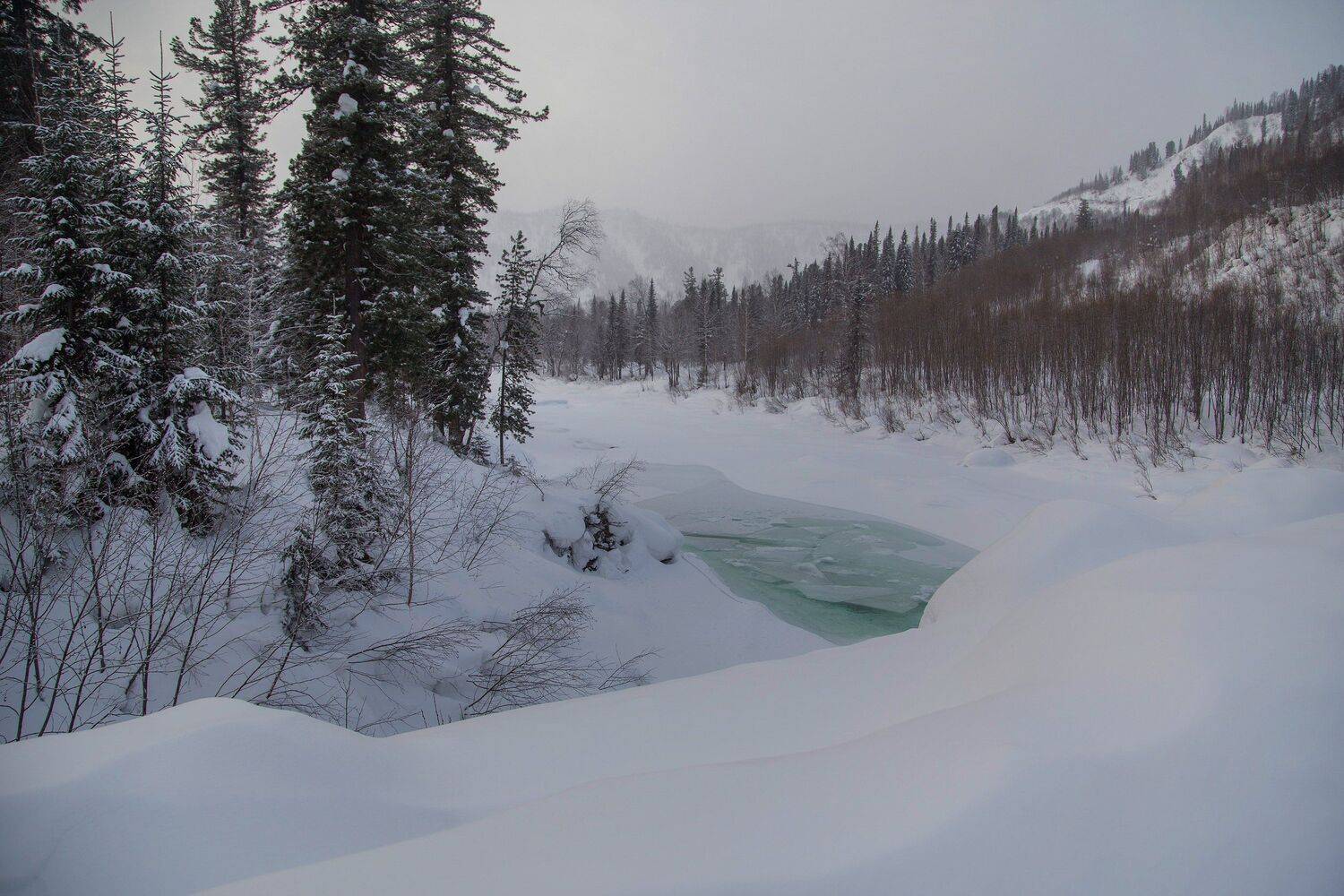 сибирьзимаснегкузбассприродапейзажлесрека казыр