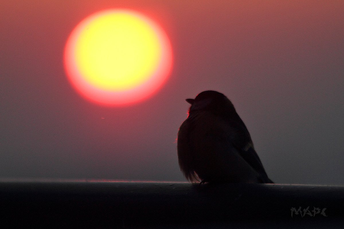 животные птицы большая синица зима вечер солнце закат, Шангареев Марс