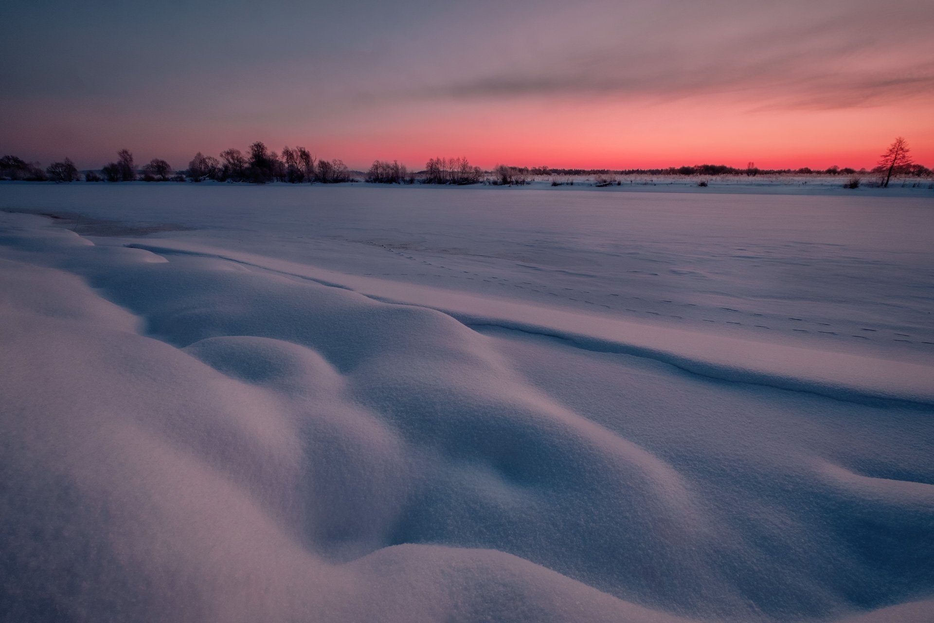 пейзаж, река, лед, снег, утро, рассвет, красный, холод, иней, Андрей Чиж