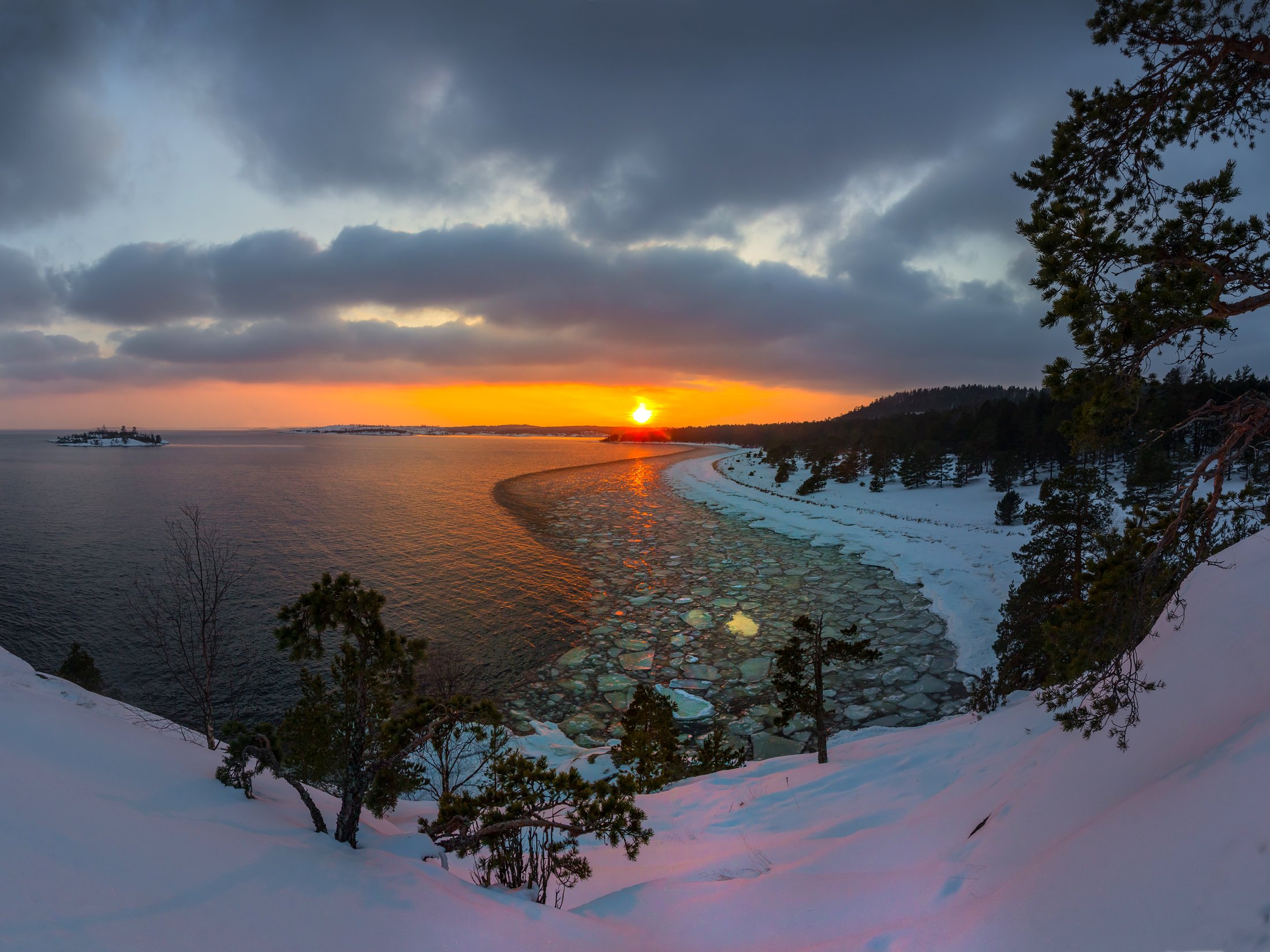 Sunset on lake Ladoga . February 2018. All holidays will in the area of Lakhdenpokh'ya to explore new places, and ice conditions. If anyone wants to join, write in direct. I plan one day photo tour on Saturday