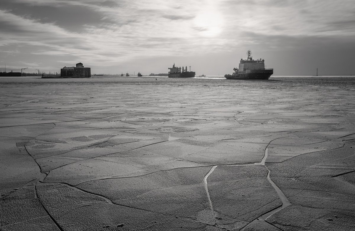 Тусклое небо, скованное льдом море, черные железные громадины, наконец форт - Чумной! Все в тему, довольно безрадостную. Но работа хоть и не броская, но очень даже выразительная.