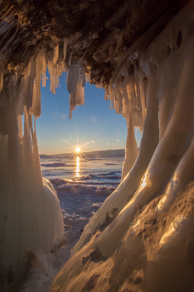 Байкал, лед, солнце, грот, пещера, сосульки, зима, Сергей Козинцев