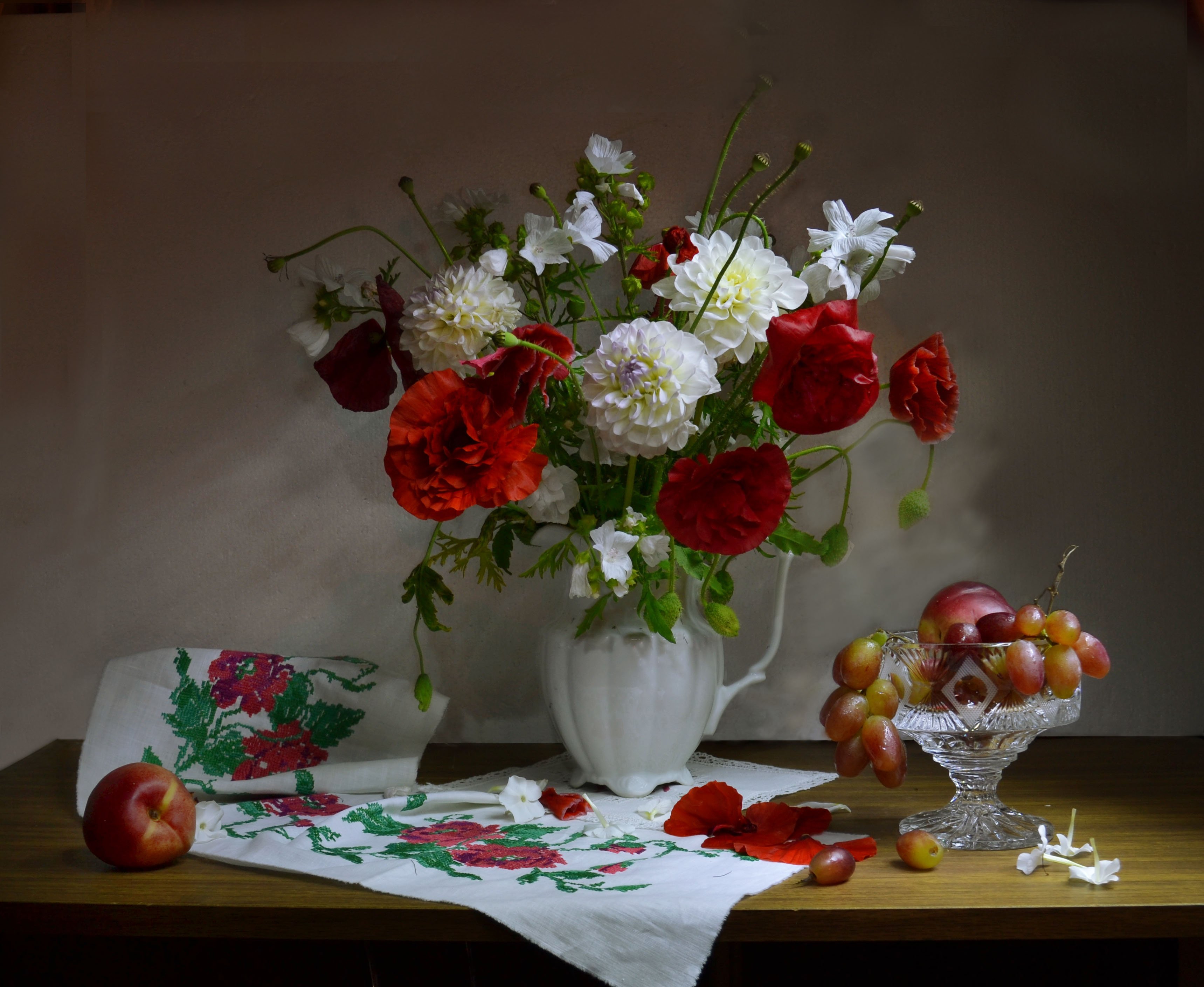 still life, натюрморт, цветы, фрукты, фото натюрморт, маки, лето, георгины, август, Колова Валентина