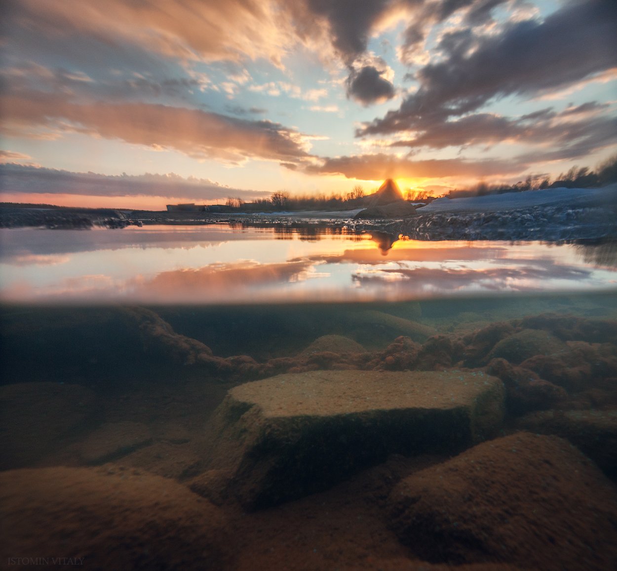 пейзаж,закат,май,россия,свет,небо,отражение,вода,камни,имандра,кольский,север,хибины,озеро, Виталий Истомин
