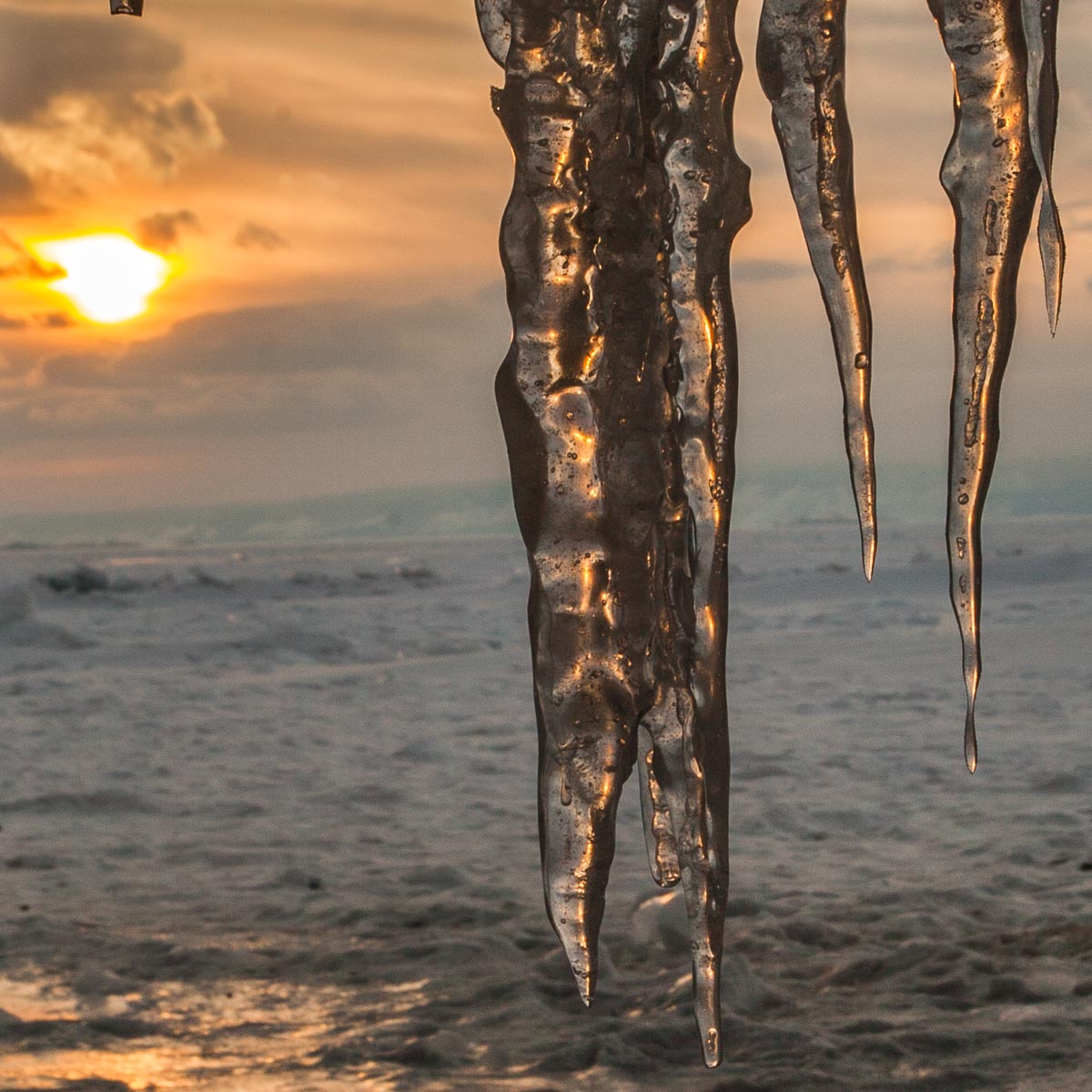 Байкал, лед, сосульки, закат, солнце, Сергей Козинцев