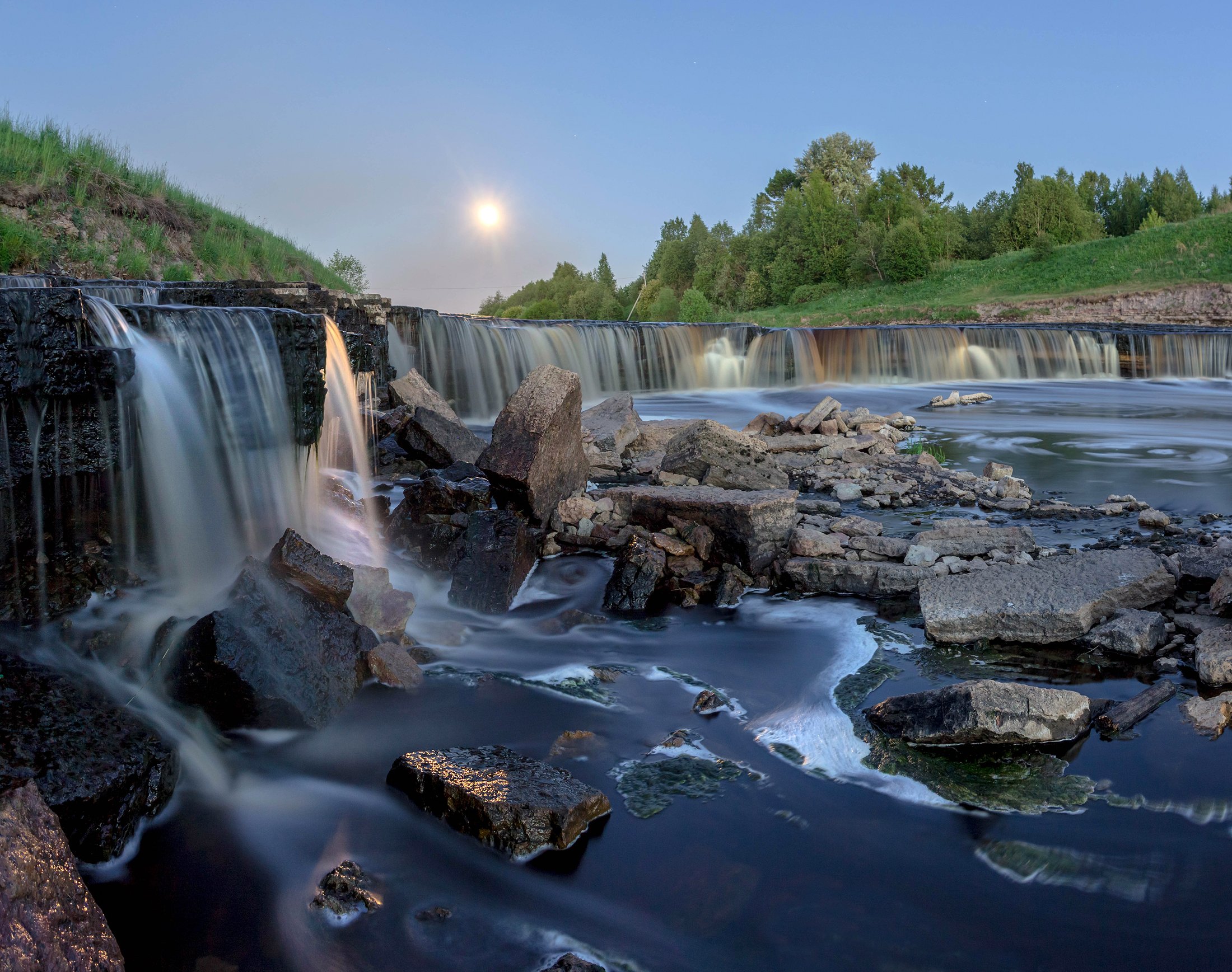 Сегодня выбрались на ночно-рассветную съемку. Немного посовещавшись ,куда ехать , прикинул ,что похоже луна под утро будет прямо за водопадом. И вот он , Гертовский под луной. Потом был еще приятный туманный рассвет в долине реки