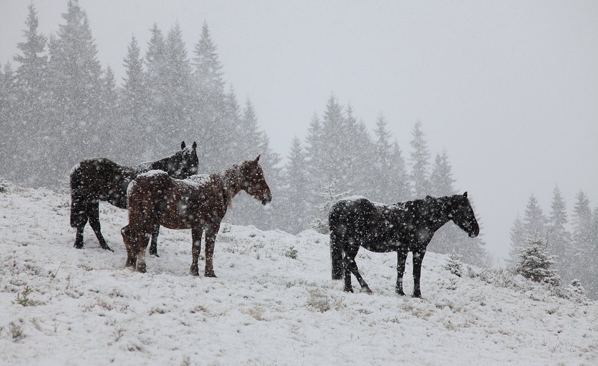 снег, карпаты, лошади, Михаил Псарёв
