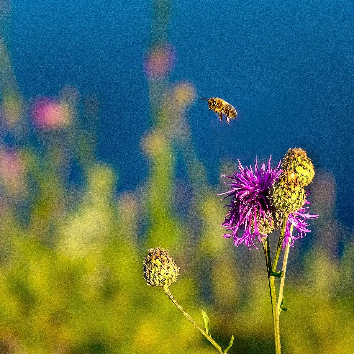 макро, лето, закат, пчела, Александр Потапов