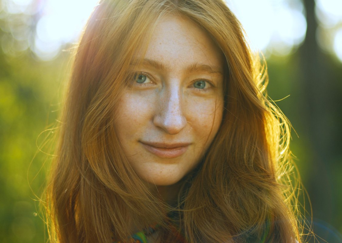 живая девушка на фото, отличный портрет, только блик на носу приглушить, а то он визуально увеличивает размеры кончика носа. А в целом отлично, настоящая!