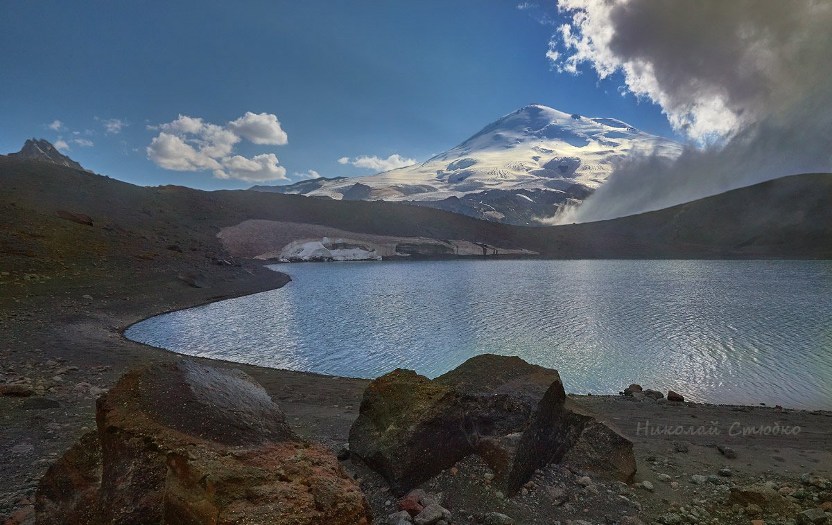 кавказ, горы, эльбрус, озеро, облака, Николай Стюбко