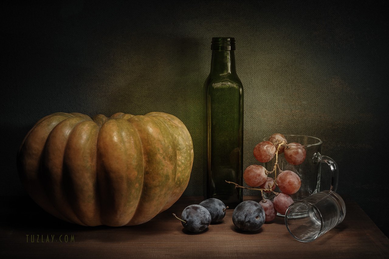 виноград, сливы, тыква, стеклянная посуда, Владимир Тузлай