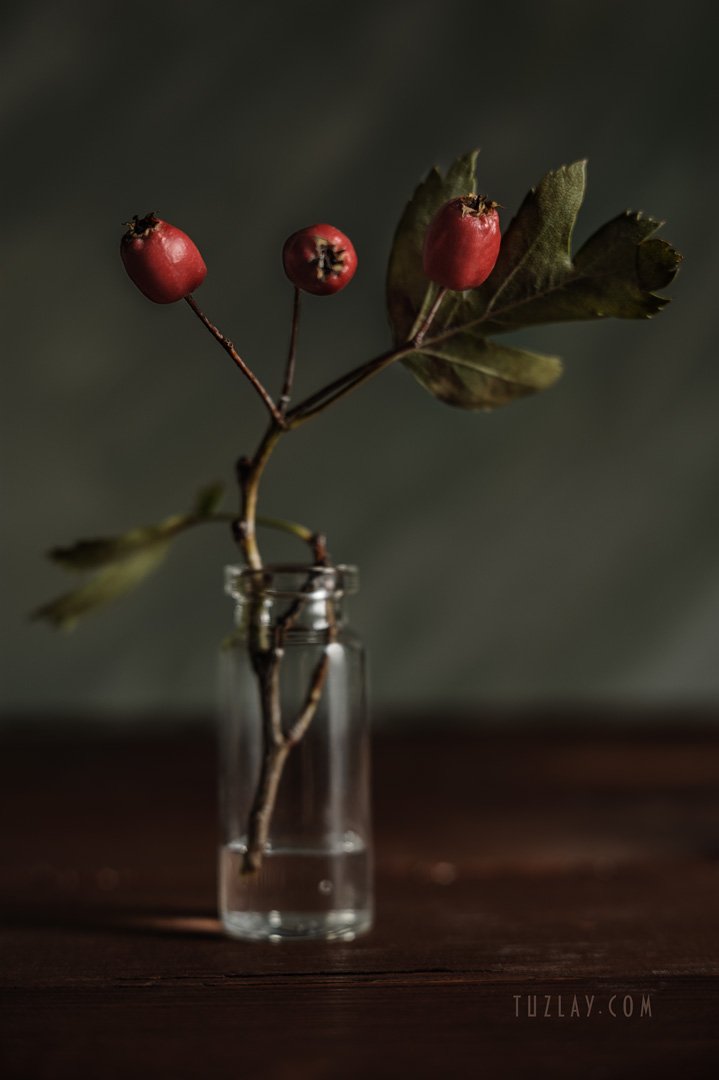 боярышник, флакон, пузырёк, красные ягоды, осень во флаконе, Владимир Тузлай