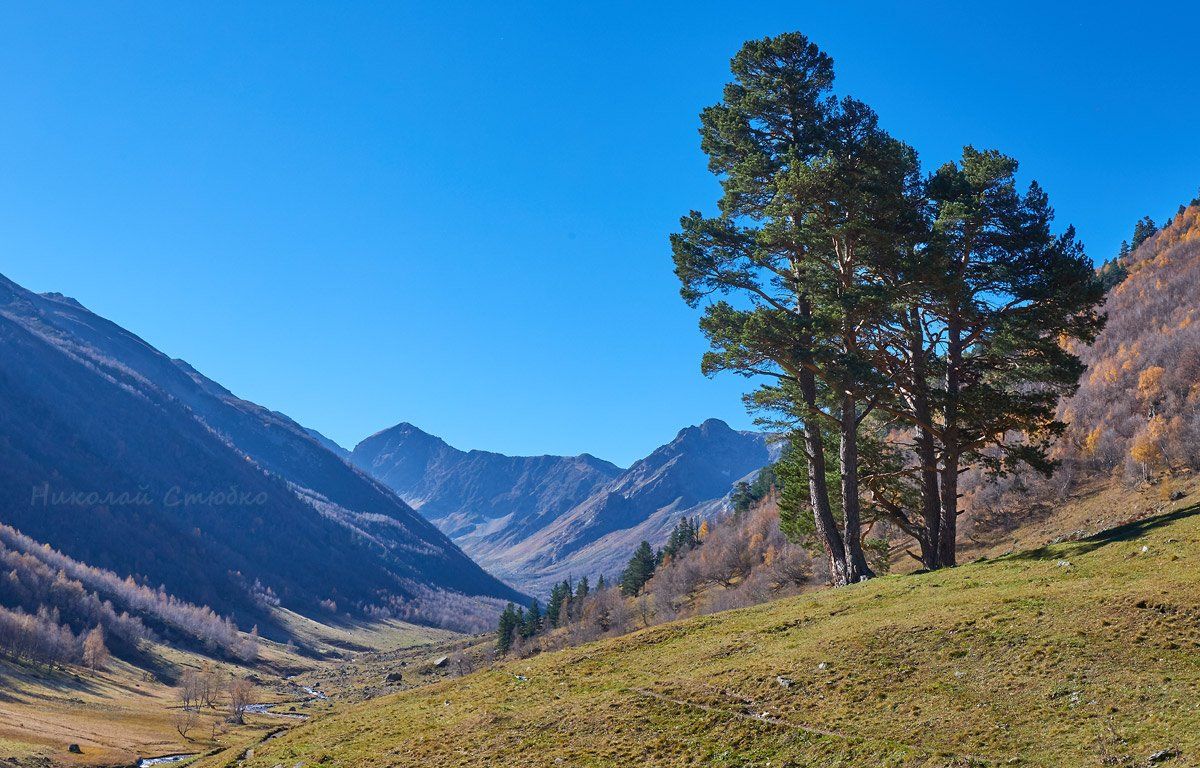 кавказ горы небо архыз осень сосны, Николай Стюбко