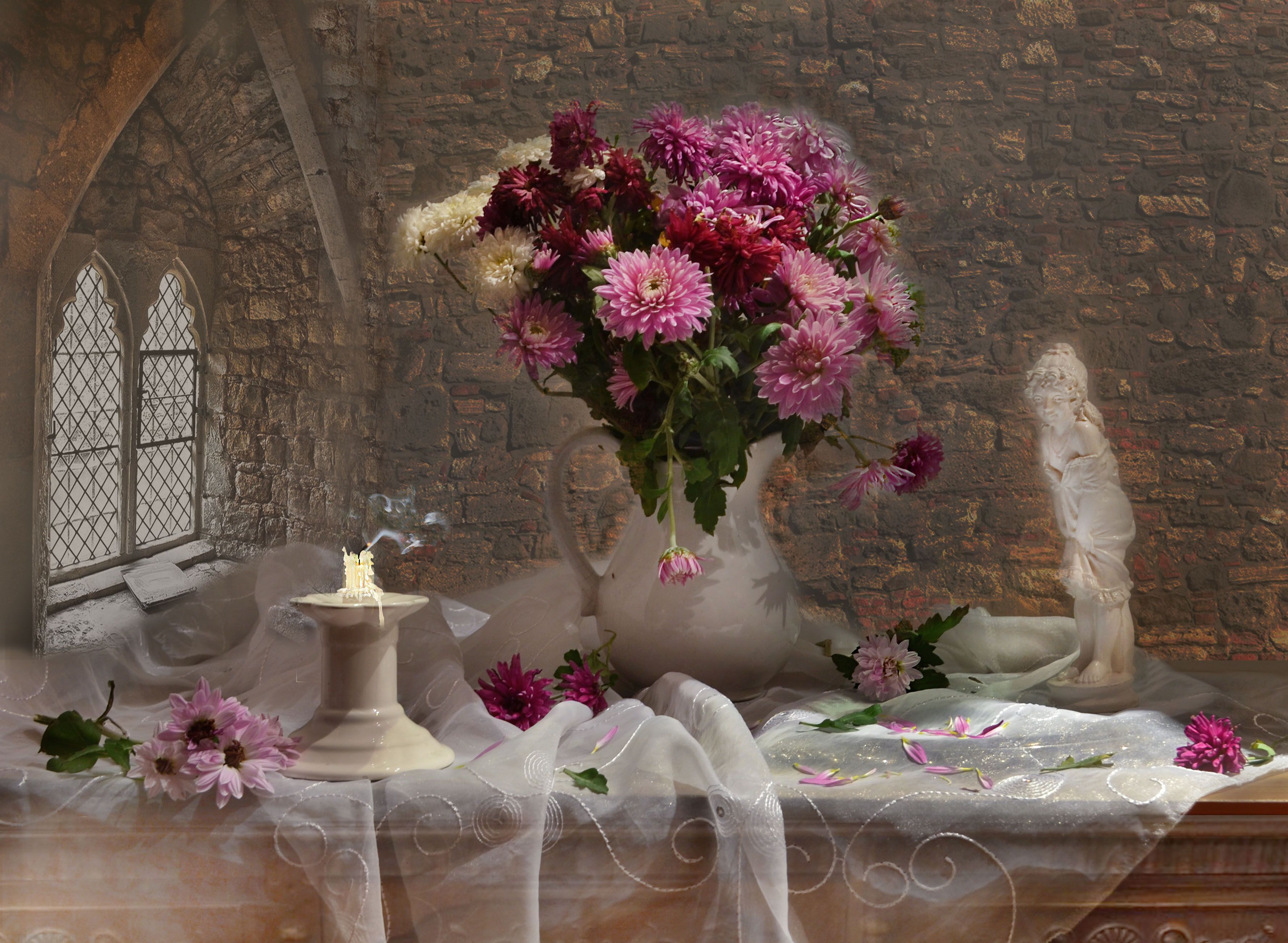 безмолвной красотой букета