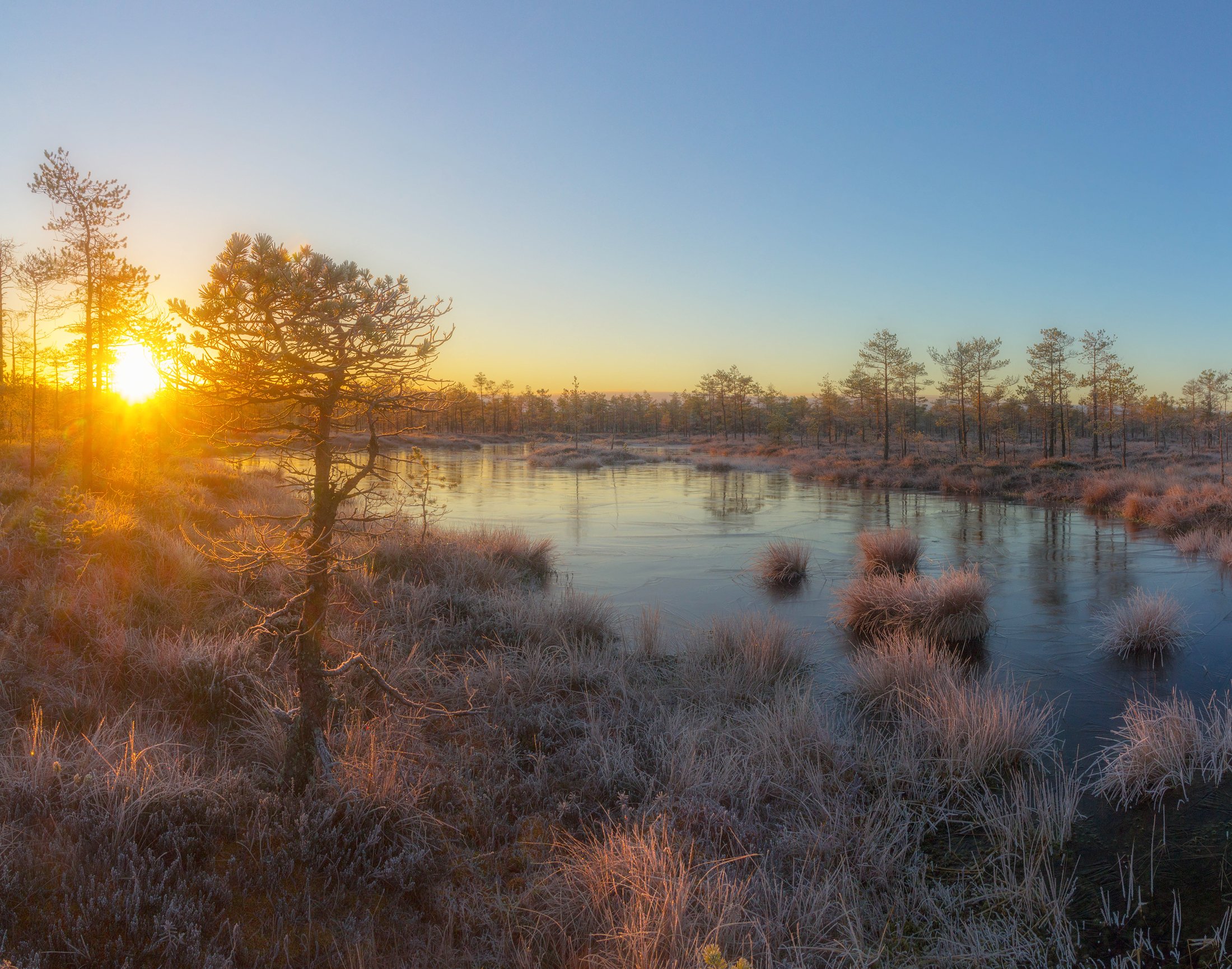 болото, рассвет ,туман, иней, мороз, Павел Ващенков