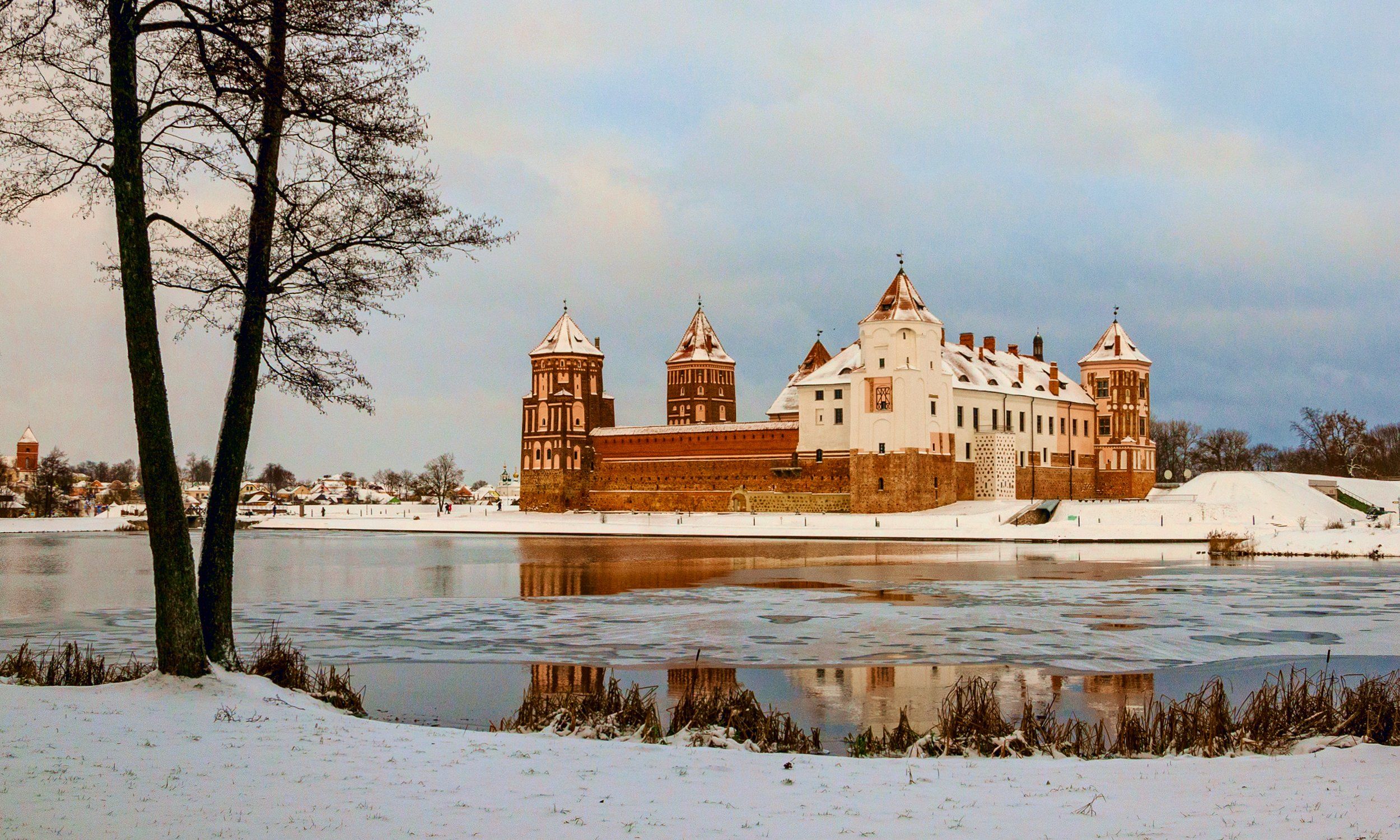 Мирский замок является самым восточным готическим сооружением, а также самым крупным и единственным не культовым объектом из сохранившихся немногих образцов самобытной белорусской готики Построенный в начале XVI в. магнатом Ю. И. Ильиничем замок стал первым частнособственническим замком на землях Белоруссии. С 1568 г. замком владели Радзивиллы (до 1828), Витгенштейны (до 1891). Последними владельцами замка были Святополк-Мирские (до 1939), после чего замок стал государственной собственностью.