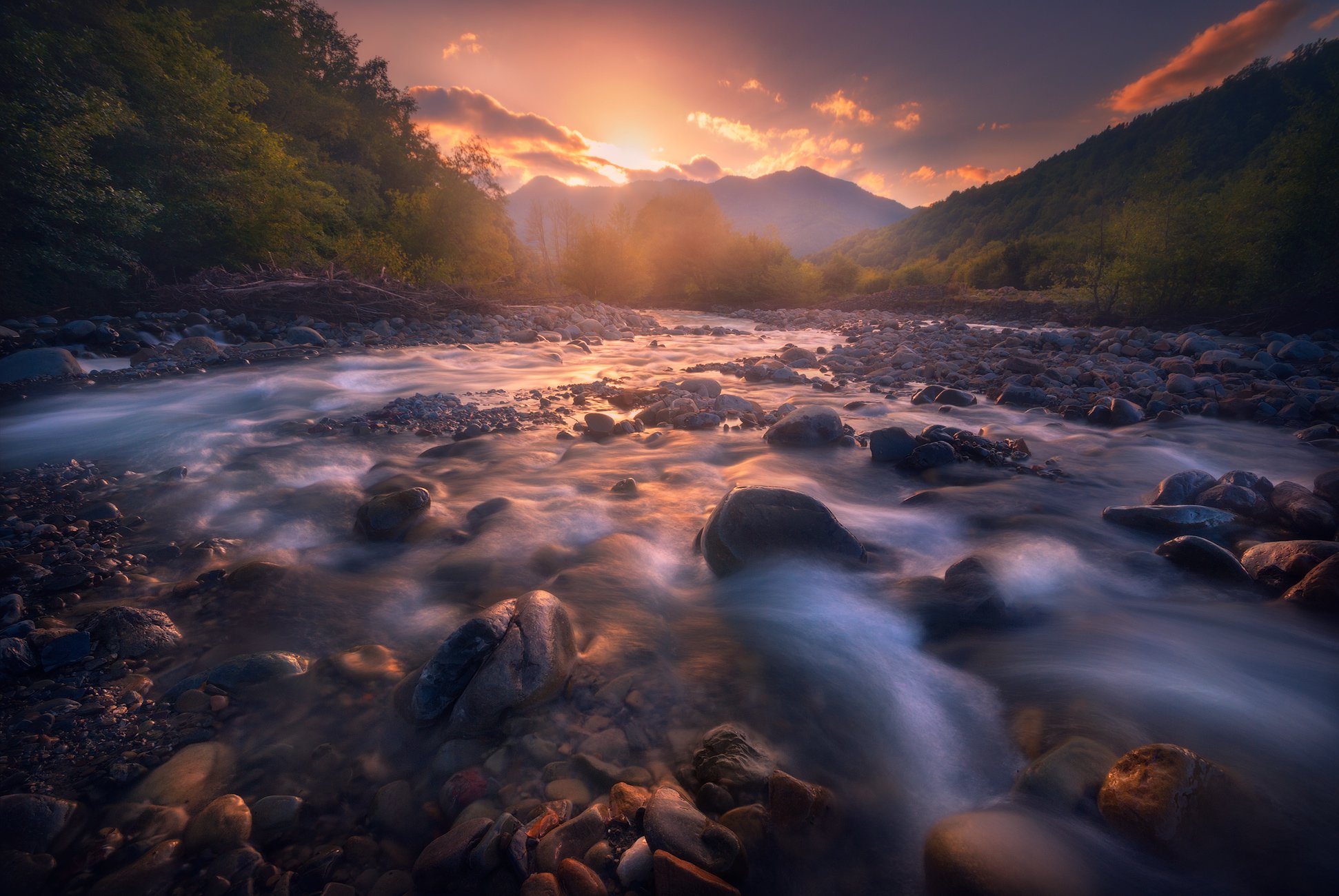 Mountain and forest small rivers and streams