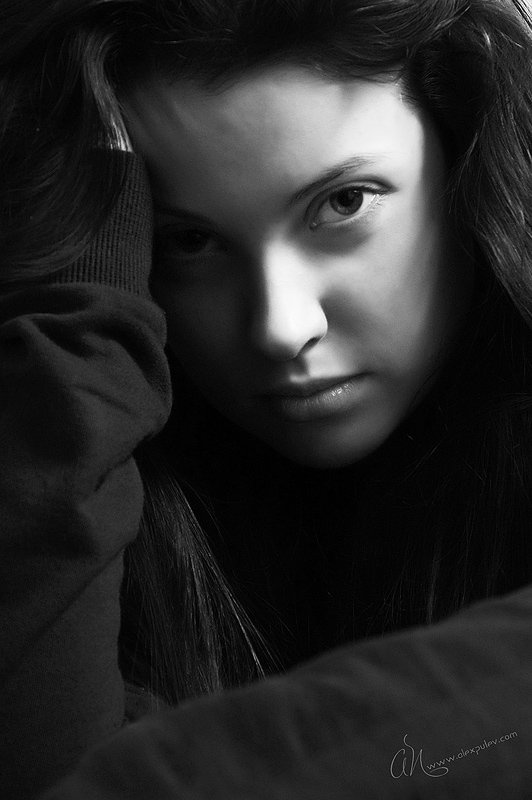 портрет,девушка,настроение,глаза,черное,белое, Александр Путев