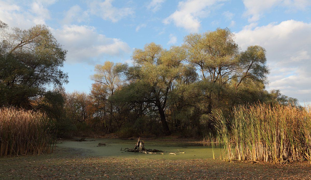 осень, болото, трясина, пень, вечер,, Михаил Псарёв