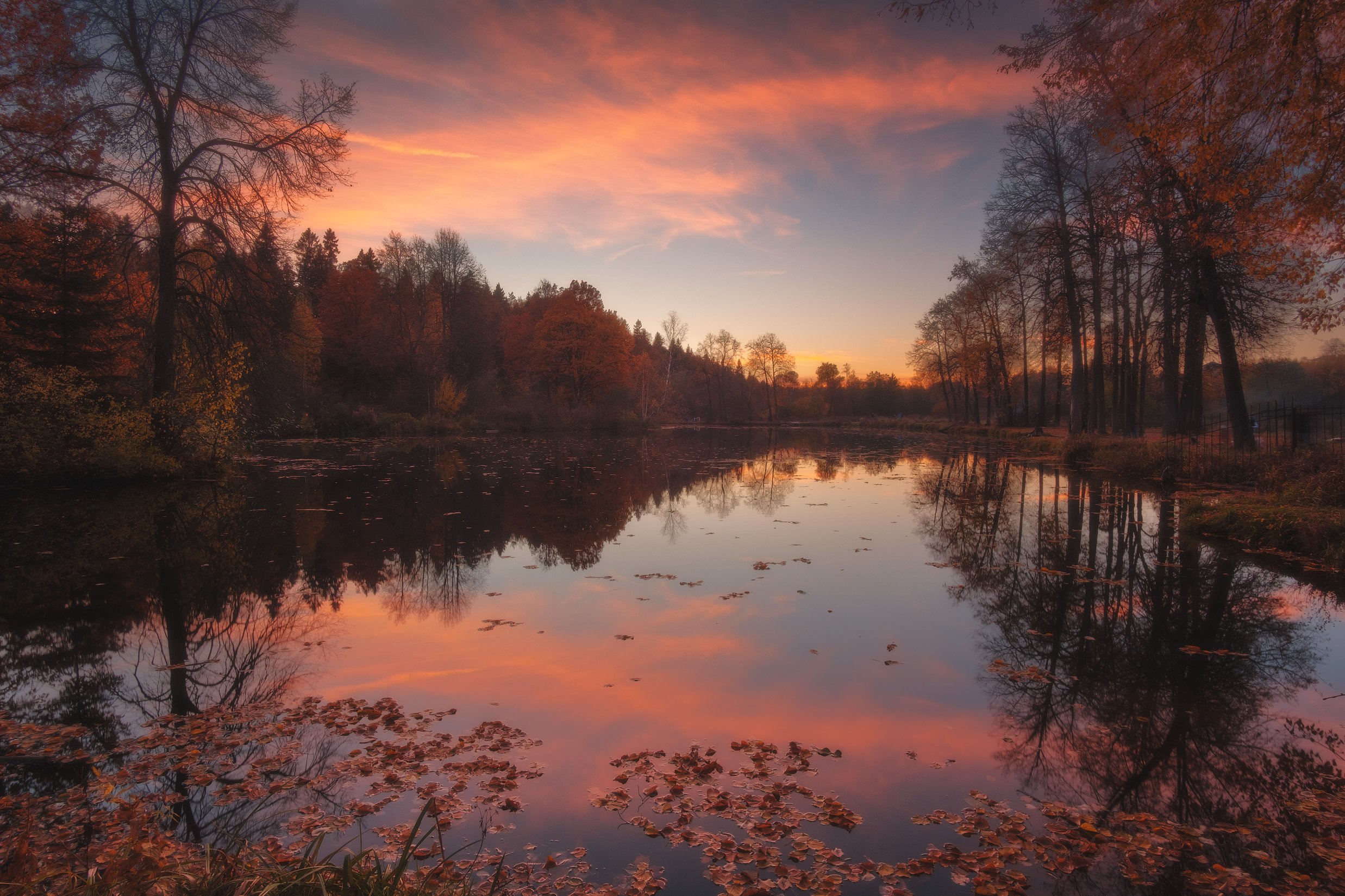 россия, московская область, середниково, вечер, заход солнца, закат, сумерки, усадьбы, осень, пруд, пейзаж, природа, Оборотов Алексей